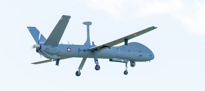 Ende April sind die ersten Hermes 900 HFE (ADS 15)-Drohnen in der Schweiz eingetroffen. Die Armasuisse lud Medienschaffende am 8. September zu einem Augenschein auf den Militärflugplatz Emmen ein.