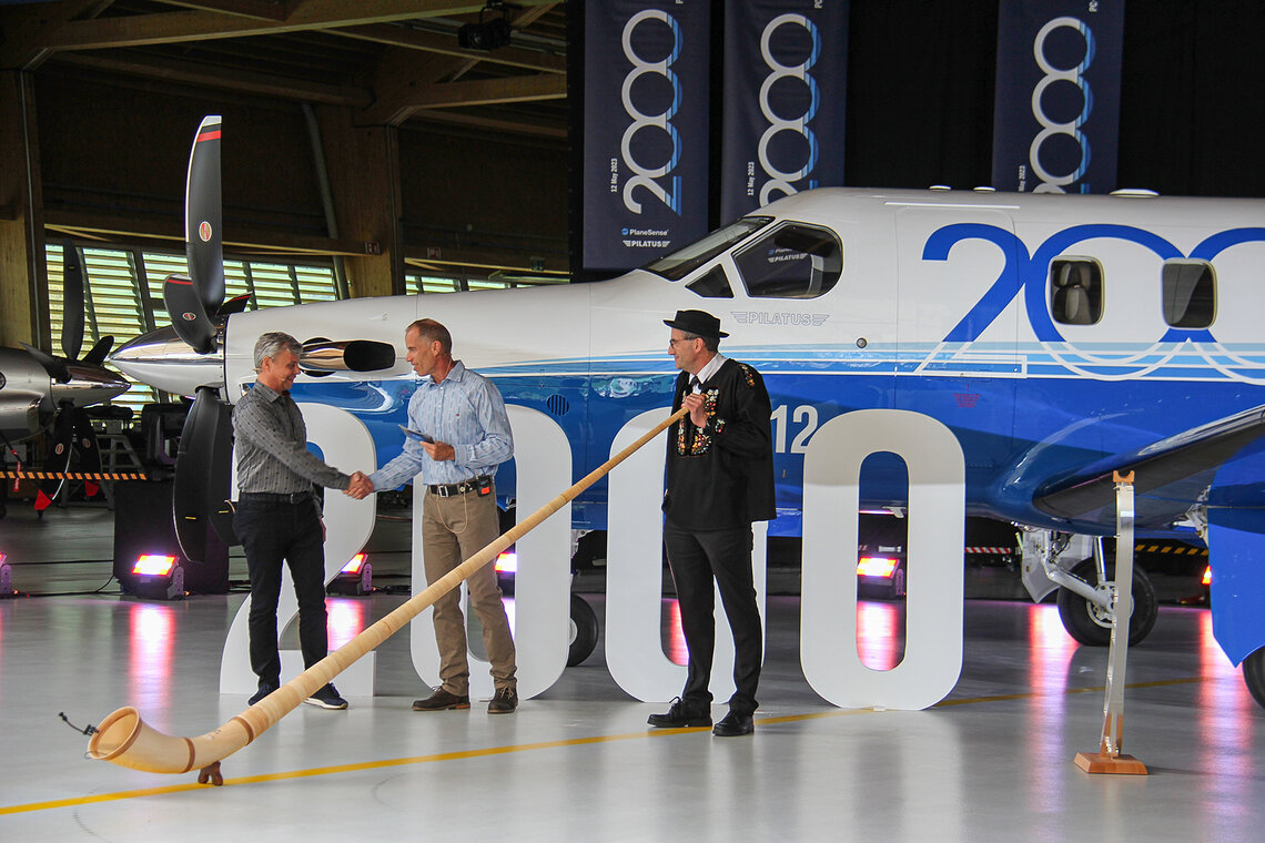 Pilatus heisst nicht nur Luzerns «Hausberg» sondern auch einer der bedeutendsten Flugzeugbauer weltweit. Anlässlich der Übergabe des 2000. Pilatus PC-12 luden die Flugzeugwerke zu einer fulminanten Übergabefeier. Mehr als 2000 geladene Gäste – der neue Besitzer George A. Antoniadis, Gründer, Präsident und CEO von PlaneSense, seine persönlichen Gäste und Kadermitarbeitenden, Vertreter des Turbinenherstellers Pratt & Whitney Canada sowie die Mitarbeitenden der Pilatus-Flugzeugwerke – nahmen an diesem einmaligen Event teil.