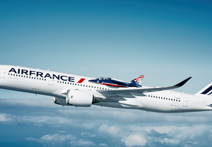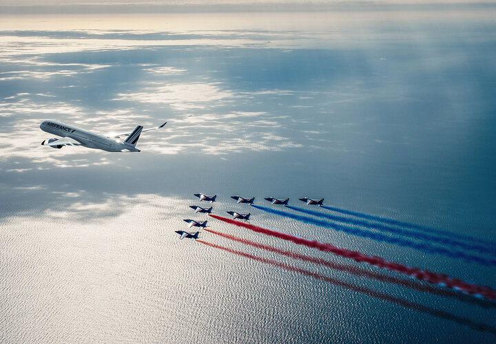 Ende September 2023 hat der 22. Airbus A350-900 der Air France mit dem Namen «Les Sables-d'Olonne» seinen Überführungsflug vom Montagewerk des Herstellers in Toulouse zum globalen Drehkreuz von Air France in Paris-Charles de Gaulle absolviert. Zu diesem Anlass flogen die Piloten der Patrouille de France mit ihren Alphajets, welche einen Positionierungsflug zur Vorbereitung einer Flugshow in der Region Occitanie durchführten, im Rahmen einer perfekt choreographierten Flugschau neben dem Flugzeug her. Der Einsatz wurde in einer Höhe von über 2'500 Metern über der Camargue gefilmt. Bei dieser von den Besatzungen sorgfältig vorbereiteten Sondermission mit dem Namen «Athos A350» flogen elf Flugzeuge unterschiedlicher Grösse zusammen, um ausergewöhnliche Bilder zu erzeugen.