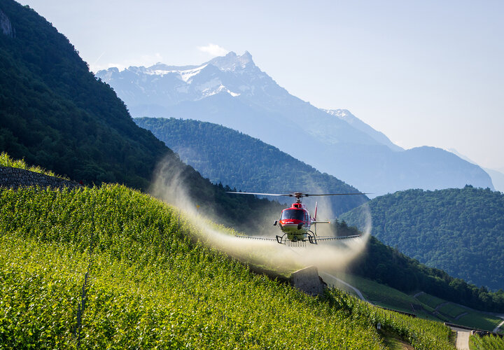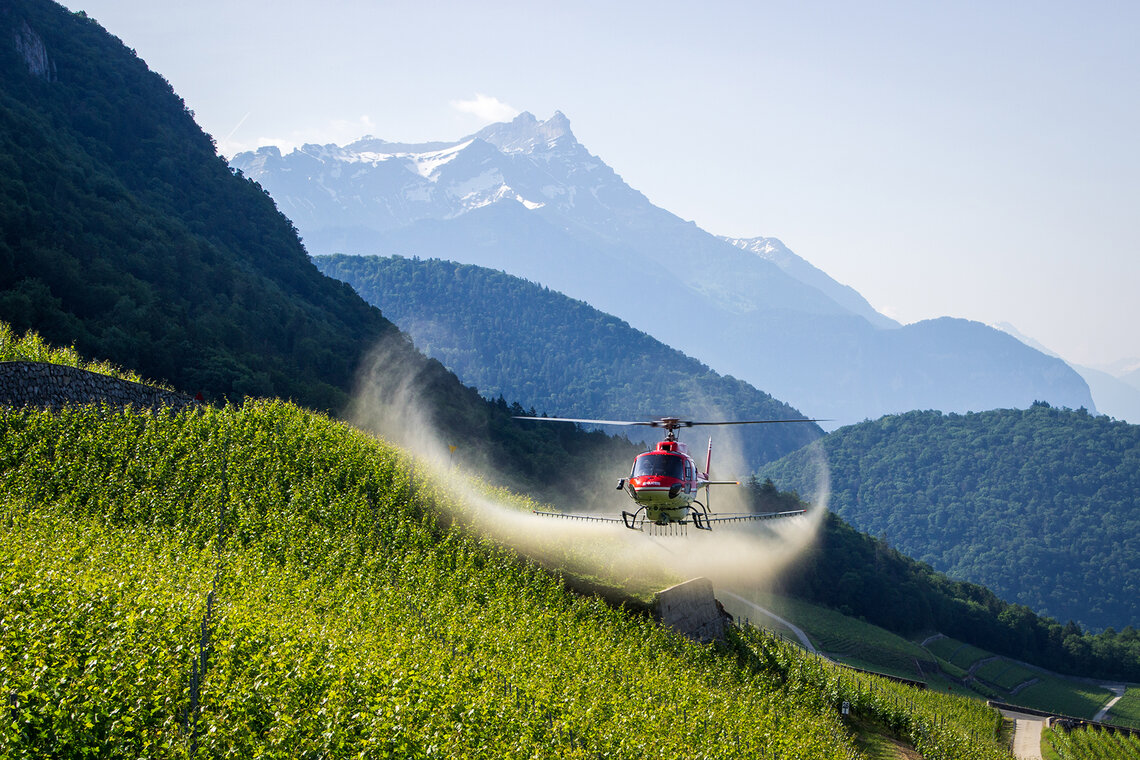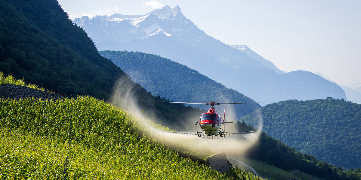 Heute wird der Hubschrauber hauptsächlich für die Behandlung von Weinbergen und Aprikosenbäumen eingesetzt und hat seine Wirksamkeit in vielerlei Hinsicht bewiesen. Die Einsatzfähigkeit der Helikopter und das rasche Eingreifen hätten es ermöglicht, den Kampf gegen Schädlinge in grösserem Massstab zu gewinnen. «Ob bei der Bekämpfung von Maikäfern, Kartoffelfäule oder Schädlingen an anderen Feldfrüchten, der Helikopter hat sich für die Schweizer Landwirte als grosser Verbündeter erwiesen», schreibt Air-Glaciers.