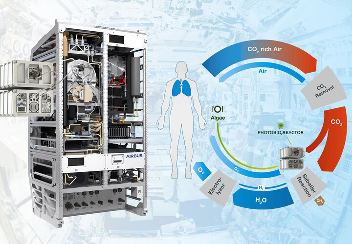 Seit Oktober 2018 ist ausserdem das Life Support Rack (LSR) der Europäischen Weltraumorganisation ESA auf der ISS installiert. Das von Airbus gebaute Rack, früher auch bekannt unter dem Namen ACLS (Advanced Closed Loop System) sammelt von den Astronauten ausgeatmetes Kohlenstoffdioxid (CO2) und wandelt dieses über einen Sabatier-Prozess mittels Elektrolyse wieder in Sauerstoff um. Das ISS-Experiment «PBR@LSR» stellt eine Technologie-Demonstration dar, um CO2 in Sauerstoff und Biomasse umzuwandeln. Der PBR wird dazu an das physikochemisches System LSR angeschlossen (Hybrid-Ansatz) und bis zu 180 Tage betrieben. Dabei werden die Leistungsfähigkeit und Stabilität der Anlage ebenso wie die der Algenkultur aufgezeichnet und bewertet.
