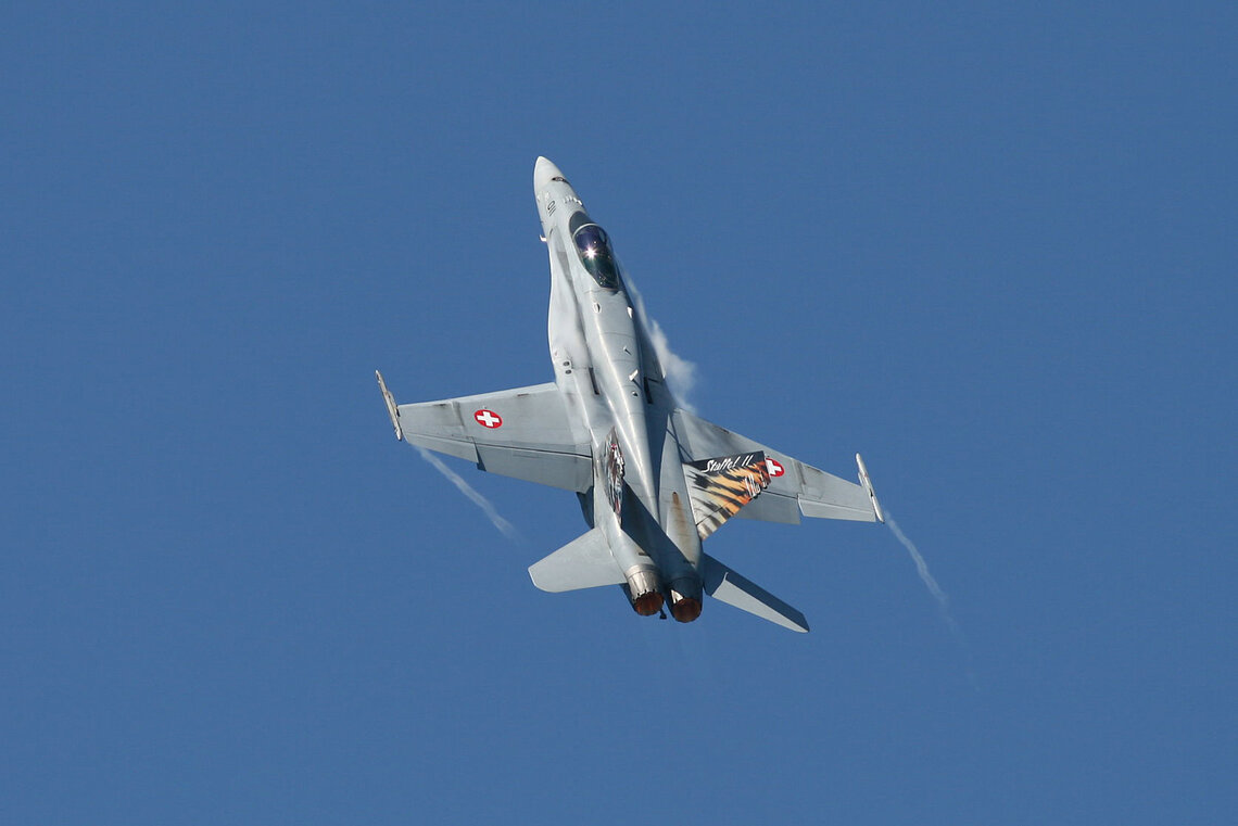 Auf dem kleinen Flugplatz oberhalb der Laufentaler Gemeinde Dittingen waren am Freitagvormittag bereits zahlreiche Zuschauende zugegen; dies vor allem, um der unüberhörbaren und beeindruckenden Trainingseinheit einer F/A-18-Maschine der Schweizer Armee beizuwohnen. Die Hornet wurde, als Überraschung, von einer Mustang-Maschine sekundiert.