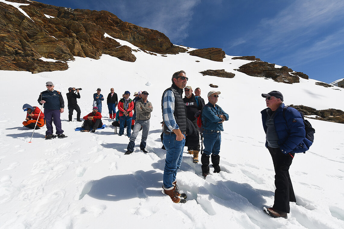 Genau 70 Jahre später zeugten dem Gletscherflugpionier dutzende Gletscherpiloten und Gäste aus dem In- und Ausland, darunter auch sein Enkel Raoul Geiger, ihren Respekt. Mit der von Geiger entwickelten Landetechnik landeten am 10. Mai 2022 rund 25 Gletscherflugzeuge und ein Helikopter auf dem Kanderfirn. Bei Hochdruckwetter mit wenig Wind und etwas Neuschnee landete ein Flugzeug nach dem anderen auf dem leicht ansteigenden Gletscher. In Reih und Glied entlang des Mutthorns zeigte sich bald eine wohl noch kaum je zuvor gesehene Anzahl Gletscherflugzeuge. Nach einem gemeinsamen Essen aus dem Rucksack starteten die Crews in den frühen Nachmittagsstunden zurück zu ihren Heimatflugplätzen. Ein denkwürdiges Fly-In zur Erinnerung an Hermann Geiger, welches nicht zuletzt dank der Umsichtigkeit und Professionalität der Piloten unfallfrei verlief, konnte erfolgreich abgeschlossen werden.