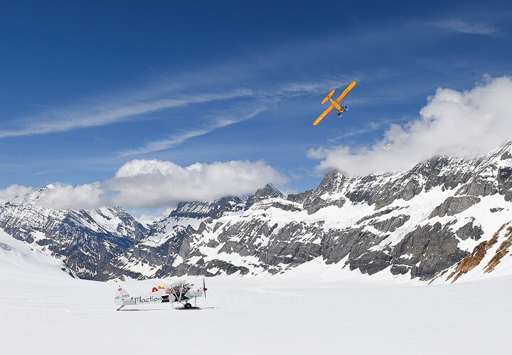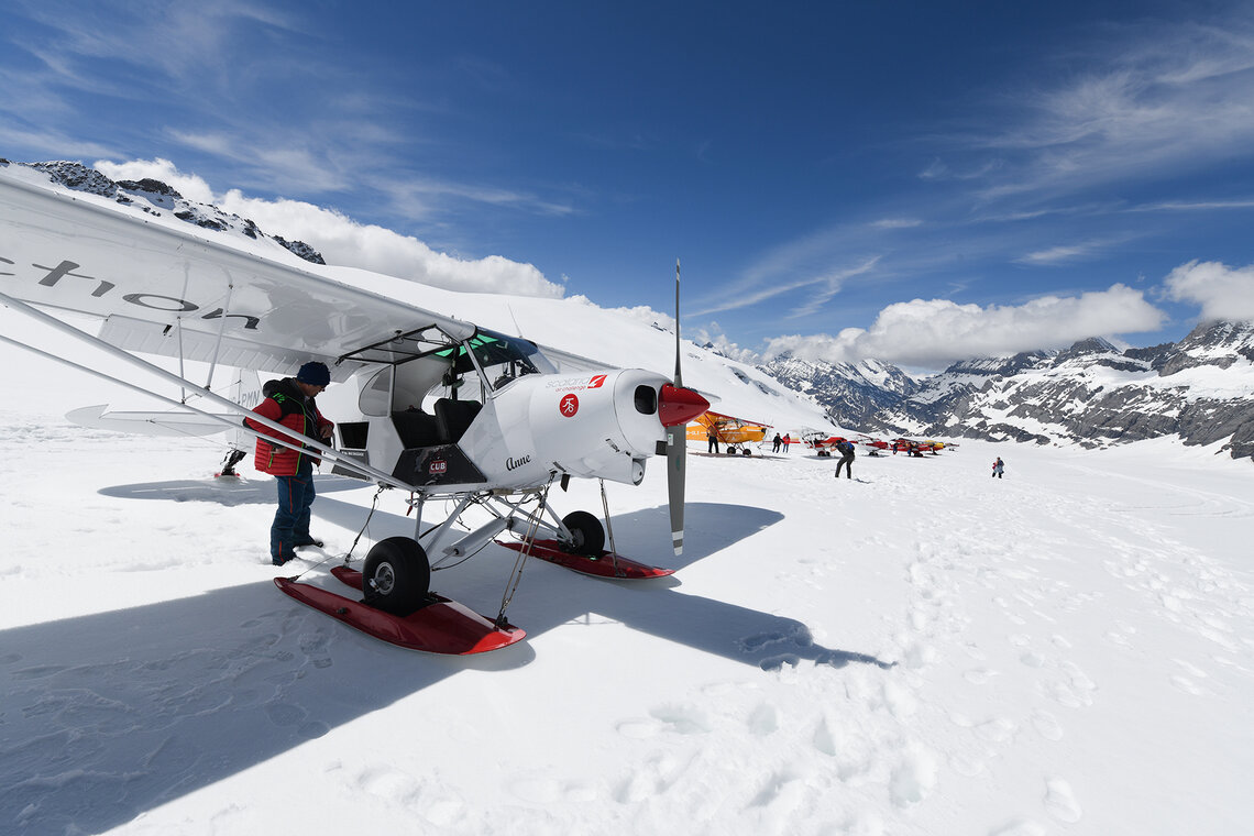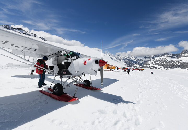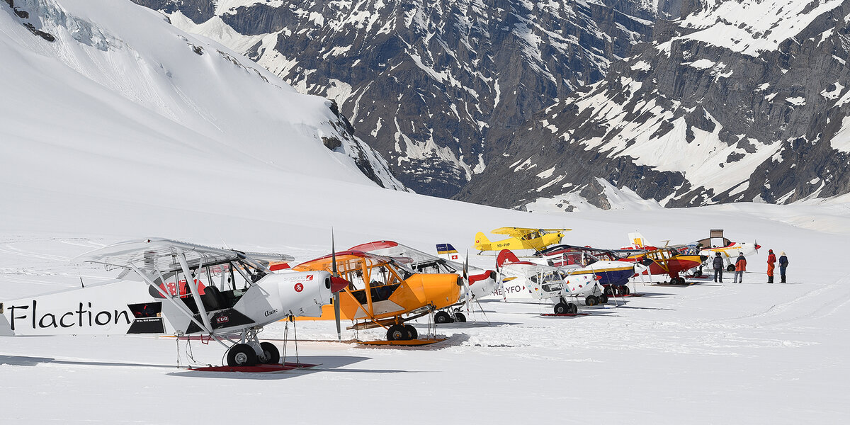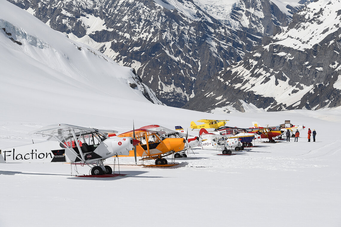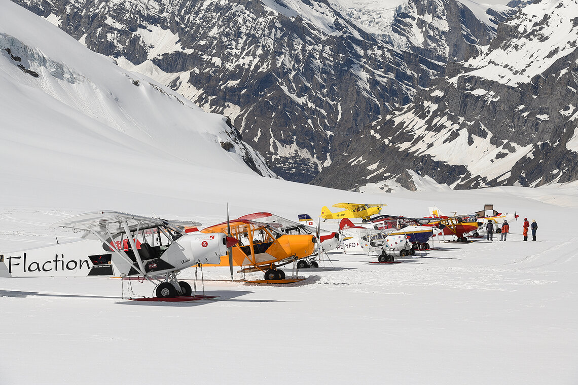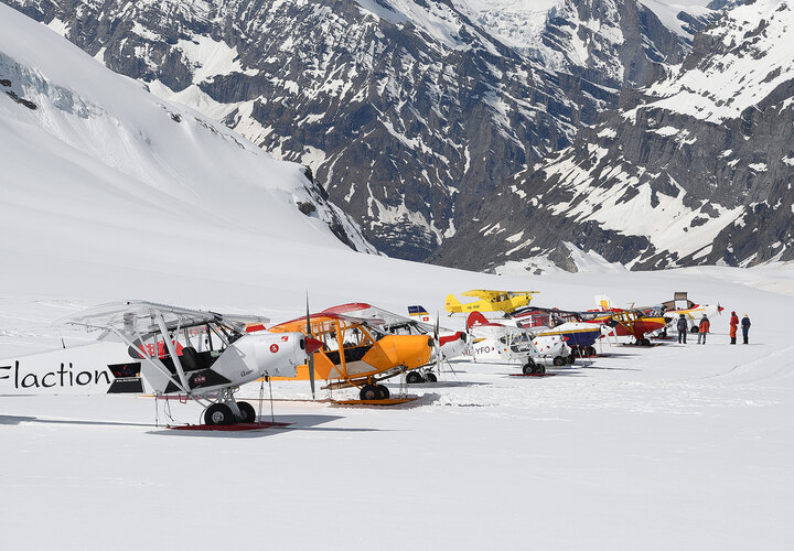 Rund 25 Gletscherflugzeuge und ein Helikopter