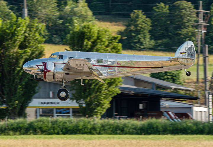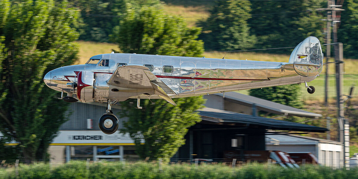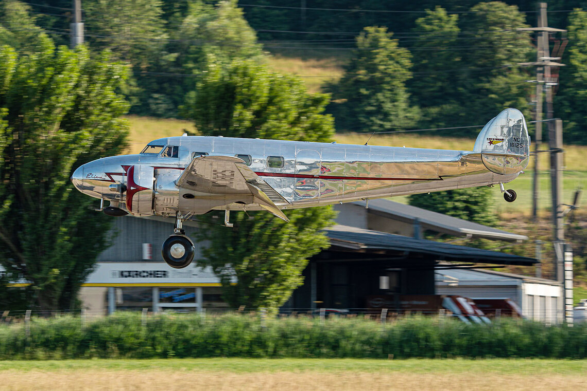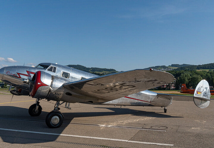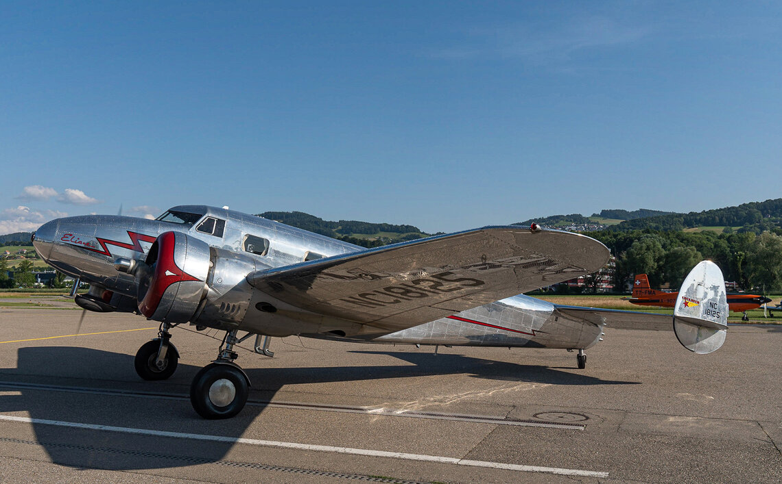 Entwickelt wurde die Lockheed Modell 12 Electra Junior in den 1930er Jahren. Der Erstflug erfolgte am 27. Juni 1936. Das Mehrzweck-Motorflugzeug des US-amerikanischen Herstellers Lockheed ist ein zweimotoriger Tiefdecker und war mit Doppelleitwerk und einem Heckradfahrwerk ausgerüstet. Es bietet Platz für sechs Passagiere, die Besatzung besteht aus zwei Piloten. Die maximale Geschwindigkeit beträgt 361 km/h, die Reichweite rund 1287 km. Insgesamt wurden 130 Maschinen dieses Typs hergestellt. Die NC18125 kann auch am ZigAirMeet 2023 in Mollis am Boden und in der Luft bestaunt werden.