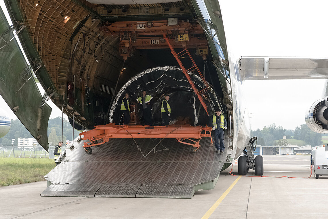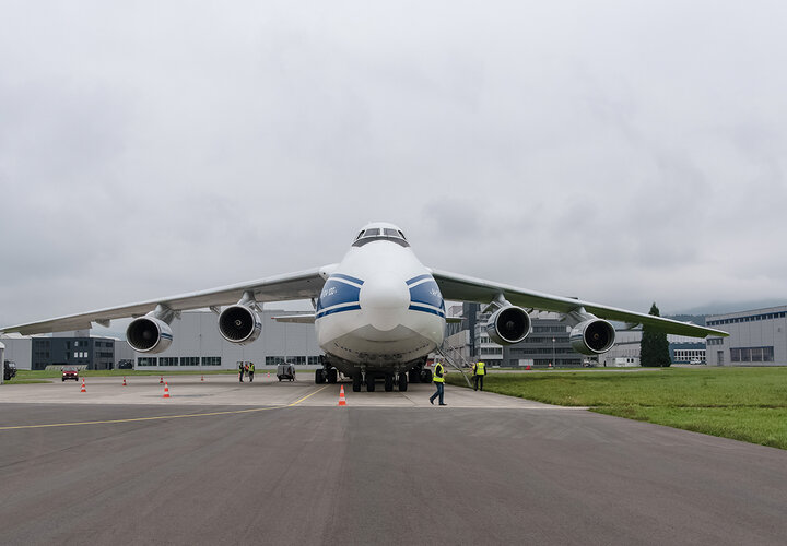 Rund 32 Mal kam die Antonov 124-100 in den vergangenen 20 Jahren nach Emmen. Sie holte Nutzlastverkleidungen für Atlas-Trägerraketen ab und flog diese sicher zum Weltraumbahnhof in Florida. Rund sechs bis acht Stunden dauerte es jeweils, um die Teile mit bis zu 5 Meter Durchmesser im Rumpf des Frachters zu verstauen und so zu befestigen, dass sie den Flug unbeschadet überstanden. Die Crew der Antonov 124-100 bestand aus jeweils sechs Loadmaster und sechs Cockpit-Crew-Mitglieder.