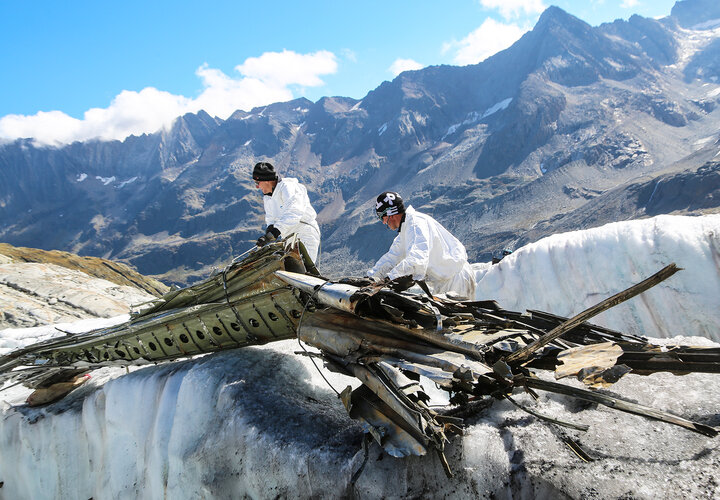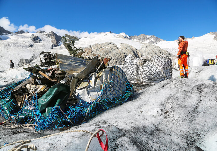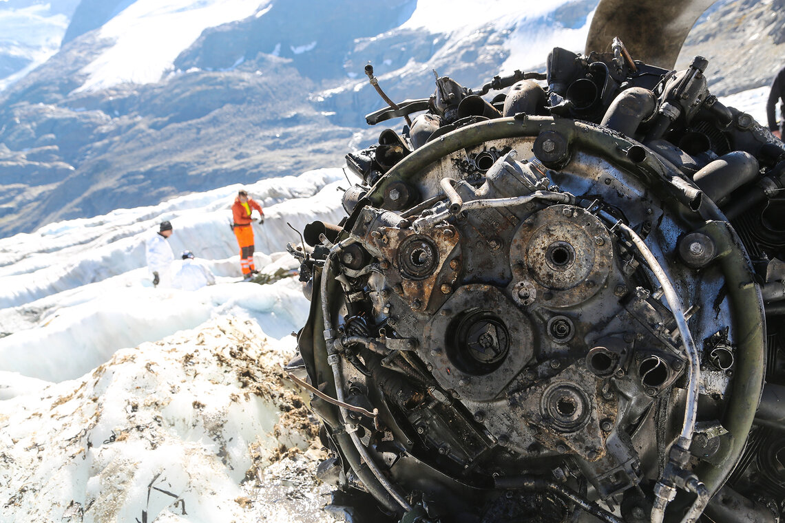 Bis zu zwei Tonnen Material, darunter ein nahezu kompletter Sternmotor, Teile der Tragfläche, Kleinteile und ein Propeller wurden gefunden. Militärhelikopter fliegen die Trümmer jetzt ins Tal. Dort werden die Wrackteile katalogisiert. Möglicherweise sollen sie in ein Museum gebracht und dort ausgestellt werden, da der Unfall vor 72 Jahren weltweites Aufsehen und enormes Medieninteresse erregte.