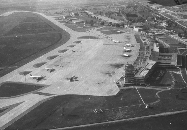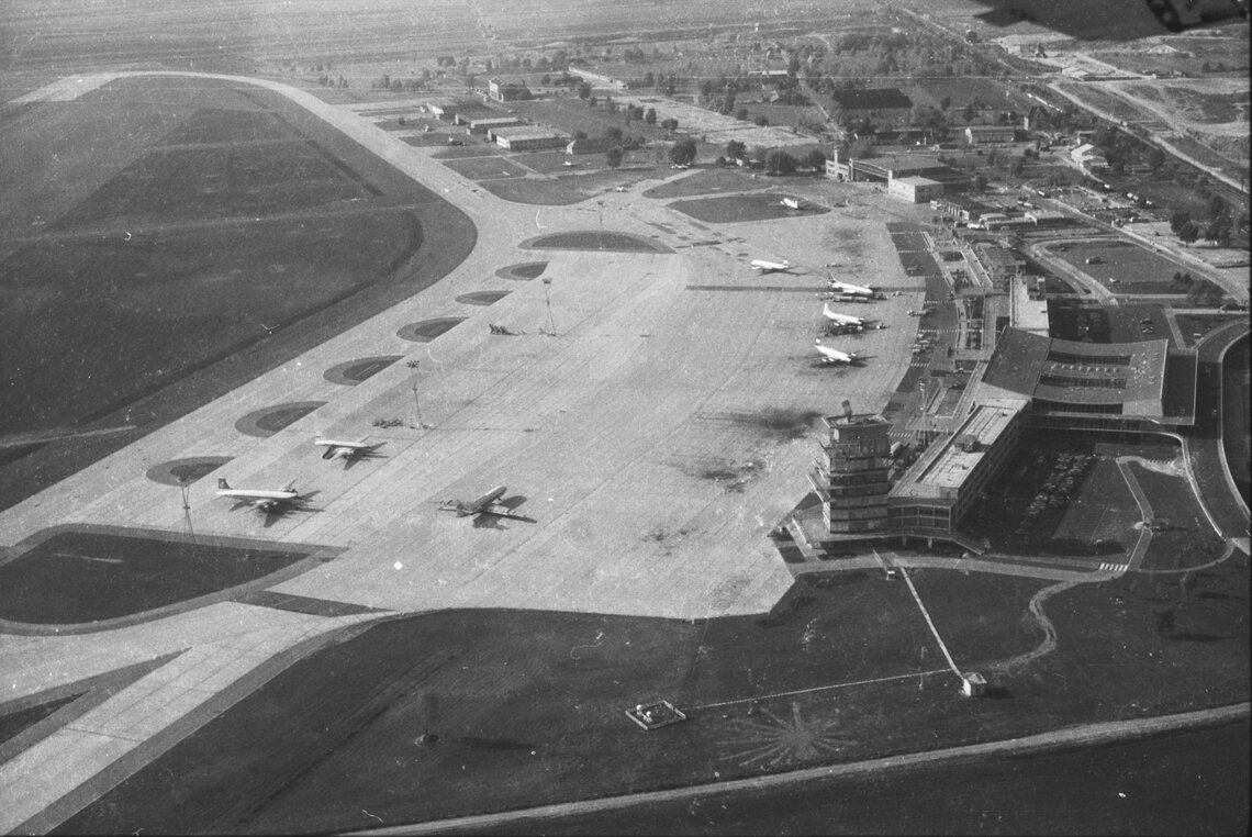 Die erste Zivilmaschine, die den Standort anflog, landete bereits am 2. September 1946 und war eine Dakota der «British European Airways». Es folgten Air France, KLM, Swissair und die italienische LAI, die einen mehr oder weniger regelmässigen Linienbetrieb nach Wien aufnahmen. 1957 wurde die Austrian Airlines AG (AUA) gegründet, die mit ihrem Erstflug nach London am 31. März 1958 den Linienverkehr aufnahm.