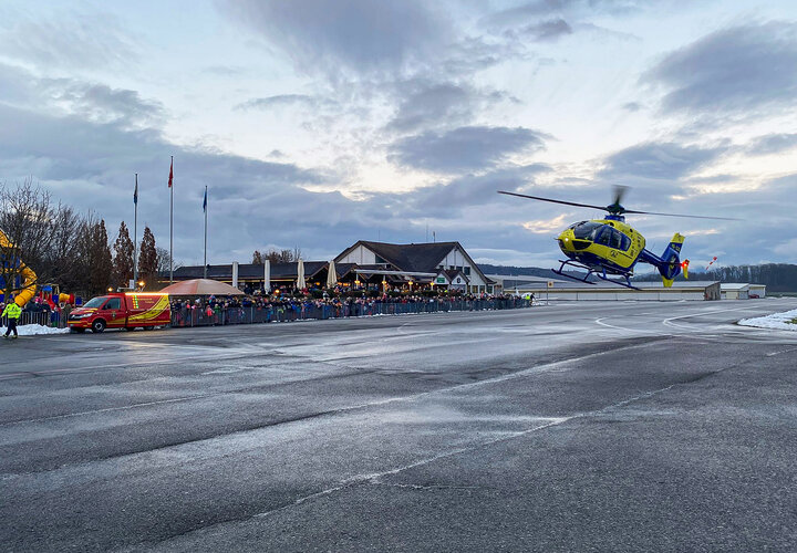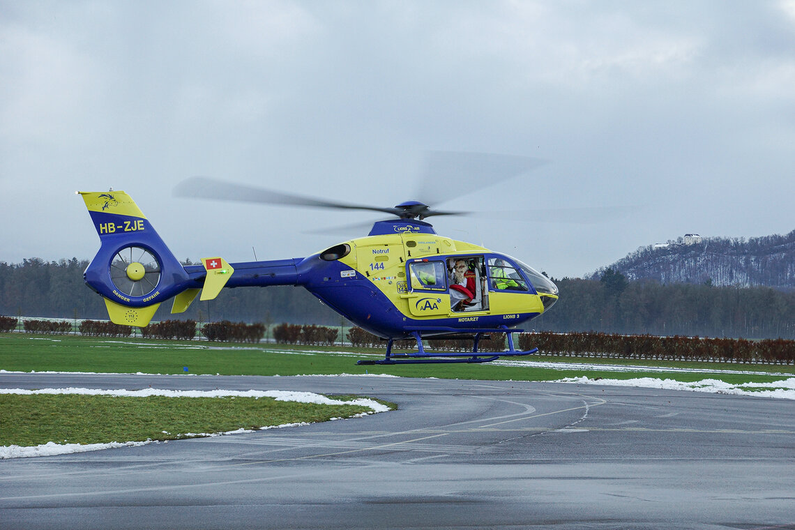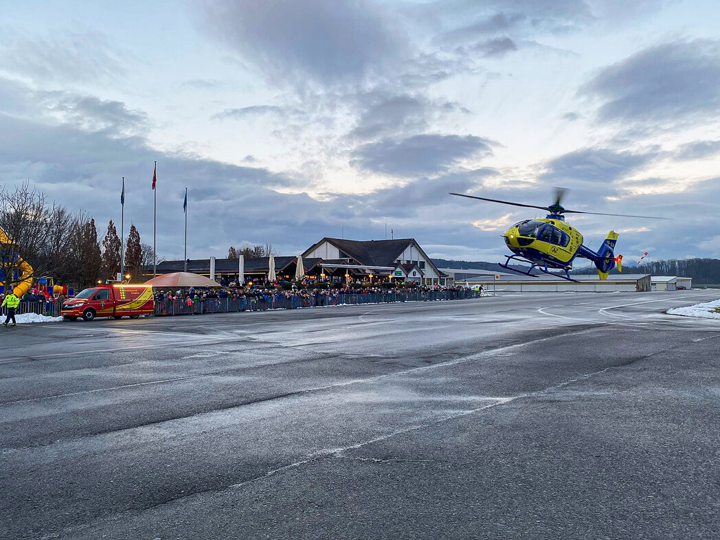 Von Osten her schwebte der gelb-blaue Rettungsheli der Alpine Air Ambulance (AAA) heran. Und aus der offenen Türe winkte der Samichlaus. Pilot und CEO der AAA, Jürg Fleischmann, sass persönlich am Steuer. Er setzte den Heli sanft auf und liess den rot gewandeten Mann mit dem langen weissen Bart vor den in sicherer Distanz wartenden Kindern aussteigen. «Es ist natürlich schon eine Ehre, den Samichlaus zu fliegen», betonte Fleischmann. Und er zeigte sich beeindruckt: «Dass so viele Besucherinnen und Besucher gekommen sind, freut uns und den Aero-Club Aargau sehr.»