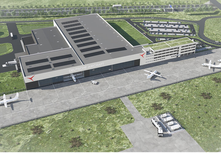 Nach dem Abschluss der vorbereitenden Arbeiten und Übergabe des rund 60'500 m2 grossen Grundstücks (rund acht Fussballfelder) Grundstücks haben die Bauarbeiten offiziell begonnen. Die Bauarbeiten sollen Ende 2025 abgeschlossen sein. Nico Neumann, COO von Deutsche Aircraft, erklärte: «Wir blicken mit grosser Vorfreude und Stolz nach Leipzig. Gemeinsam mit unseren Partnern schaffen wir am Flughafen Leipzig/Halle eine moderne und CO2-neutrale Endmontagelinie für ein zukunftsweisendes Regionalflugzeug. Das ist Zukunft made in Sachsen!»