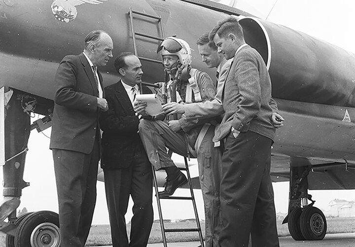 Was kaum bekannt ist: Im Learjet 23 flog ein Stück der Schweizer Flugzeugentwicklung P-16 der Flug- und Fahrzeugwerke Altenrhein (FFA) mit. Auch wenn dem P-16 der grosse Ruhm verwehrt blieb: Die Tragflächen dieses Erdkampfflugzeugs aus Schweizer Schmiede fanden eine neue Verwendung im Learjet 23, einem der ersten Jet-Geschäftsreiseflugzeuge der Welt. Dieses übernahm das Tragflächendesign des P-16. Der für sechs Passagiere ausgelegte Learjet 23 besass eine Reisegeschwindigkeit von 817 km/h und war von zwei im Heck angebrachten General Electric CJ-610-4 angetrieben.
