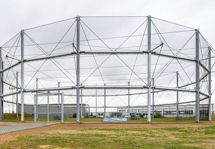 Der Käfig für Drohnen hat einen Durchmesser von 45 Metern und ist 13 Meter hoch: Innerhalb dieser Konstruktion, die von einem Netz umschlossen ist, können neuartige oder veränderte Drohnen gefahrlos getestet werden. «Drohnen und ihre Abwehr sind ein hochaktuelles Thema. Im Mittelpunkt der Entwicklung stehen Anwendungen für die zivile Luftfahrt sowie für Sicherheitsbehörden. In Zusammenarbeit mit der TU Braunschweig schaffen wir mit der neuen Infrastruktur eines Drohnenkäfigs in Braunschweig eine ideale Ergänzung zu den grossen, realitätsnahen Versuchskampagnen am Nationalen Erprobungszentrum für Unbemannte Luftfahrtsysteme des DLR am Flughafen Cochstedt. Kurze Wege zwischen Forschung und Entwicklung, ermöglichen uns zukünftig, noch schneller dringend benötigte Fortschritte bei Drohnentechnologien zu erzielen und grosse Versuchskampagnen effizient vorzubereiten», sagt Prof. Dr.-Ing. Anke Kaysser-Pyzalla, Vorstandsvorsitzende des DLR.