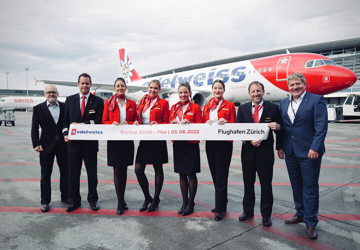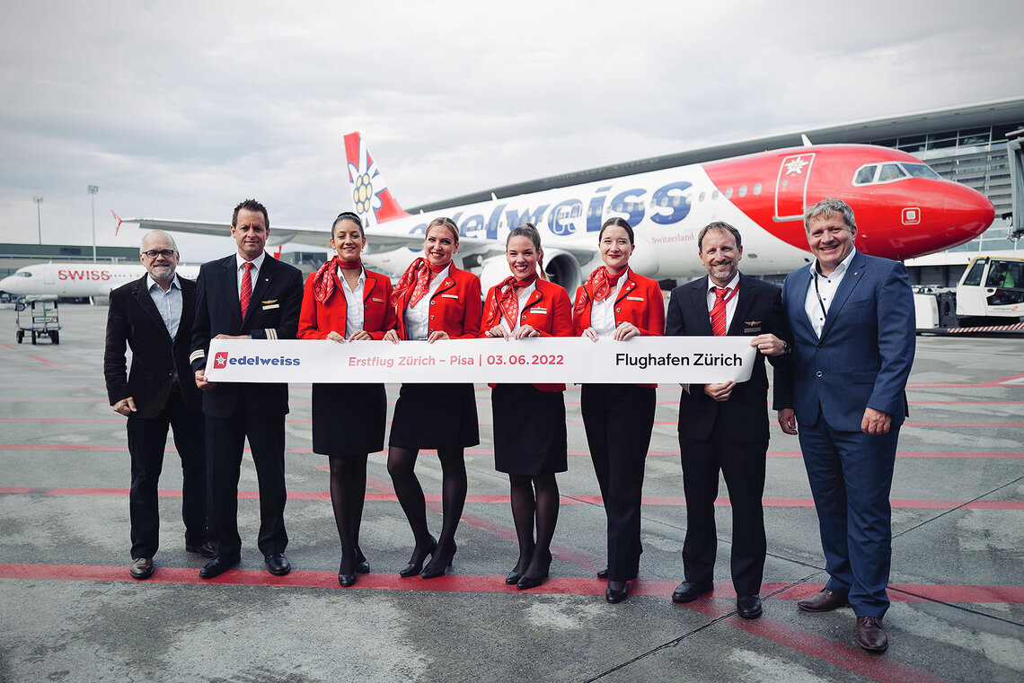 Am 3. Juni 2022 hob ein Airbus A320 erstmals nach Pisa in Italien ab. Traditionell fand kurz vor dem Start am Gate der feierliche Ribbon-Cut statt. Mit dabei war nebst Rolf Hancock, Vice President Aviation Development des Flughafens Zürich, auch David Birrer, Chief Operating Officer von Edelweiss. «Es war mir eine Ehre, an diesem feierlichen Anlass dabei sein zu dürfen. Dass wir mit Pisa eine weitere Feriendestination in Italien anfliegen, freut mich sehr», so Birrer. Bis im September fliegt Edelweiss ab Zürich zwei Mal wöchentlich nach Pisa.