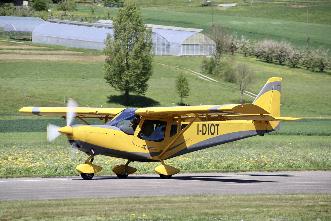 Die Immatrikulation I-DIOT regte natürlich zum Schmunzeln und zu Wortspielereien an. Nach der Betankung und einer Kaffee- und Sandwich-Pause hob die Besatzung wieder ab – wohl im Wissen, dass die Augen der Flugplatzbesucher auf sie gerichtet waren...