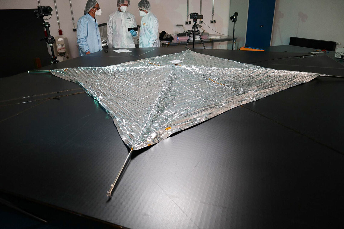 «Die Innovation des De-Orbit-Sails liegt darin, einen Satelliten aus einem niedrigen Orbit schneller in die Erdatmosphäre zurückzubringen. Hierzu muss das Segel einwandfrei funktionieren, nachdem es zehn bis zu 20 Jahre im Orbit in gestauter Konfiguration gelagert wurde. Weiterhin müssen Materialien eingesetzt werden, welche extrem dünn und leicht sind. Sie müssen zudem unter Weltraumbedingungen sehr langlebig sein und stabil bleiben», erläutert Tom Spröwitz, Leiter der Abteilung Mechanik und Thermalsysteme im Bremer DLR-Institut für Raumfahrtsysteme.