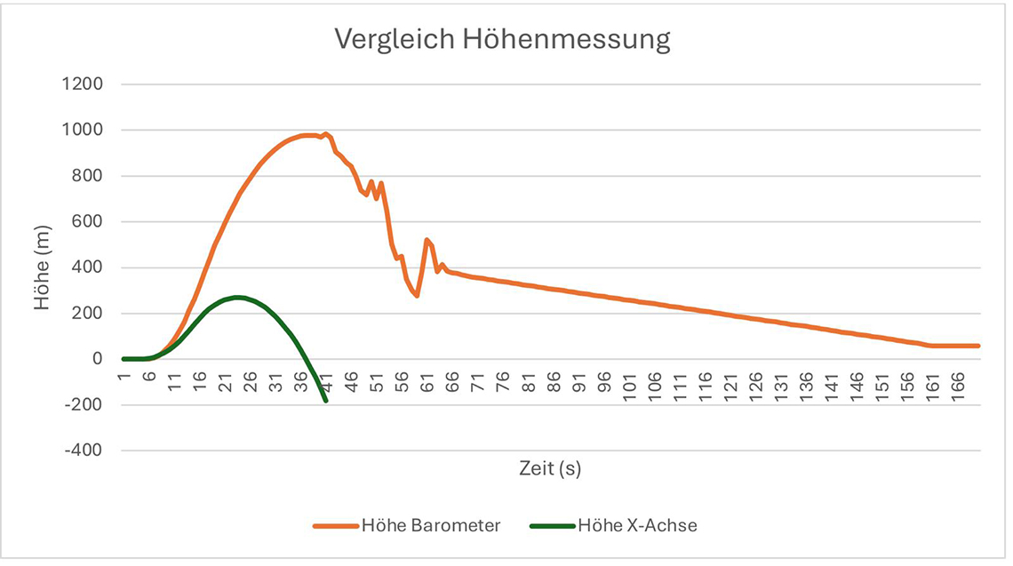 Trotz intensiver Vorbereitung war der Weg nicht frei von Herausforderungen. Wenige Tage vor dem Start traten unerwartete Probleme auf: Der SD-Adapter und die Leiterplatte waren beschädigt, weshalb die Maturandin den CanSat noch einmal zusammenbauen musste. Auch beim Launch selbst funktionierte der Beschleunigungssensor für drei Sekunden nicht. Dieser Aussetzer des Messinstruments könnte, so wird vermutet, auf die Kälte und die lange Wartezeit der Rakete vor dem Start zurückzuführen sein. Der Luftdrucksensor funktionierte erfreulicherweise einwandfrei und lieferte präzise Daten. Die Schülerin konnte die Daten auswerten und mithilfe der barometrischen Höhenformel die Flughöhe der Rakete berechnen.