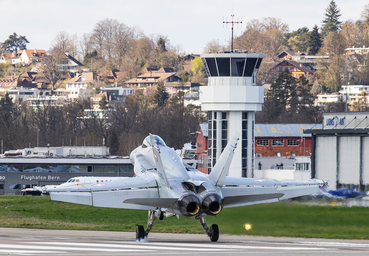 Im Rahmen der Übung «Berdeza» testete die Schweizer Luftwaffe die Fähigkeit, ihre Flugzeuge auch von zivilen Standorten aus zu betreiben. So landeten und starteten vom 31. März bis 2. April 2025 Kampfflugzeuge des Typs F/A-18 auf dem Flughafen Bern. «Indem wir trainieren, immer wieder, werden wir wieder verteidigungsfähig für den Ernstfall», betont Luftwaffenchef Divisionär Peter Merz, «dies vorallem auch dort, wo wir es nicht gewohnt sind. So trainieren wir, unsere Truppen und das Material innert kürzester Zeit im ganzen Land zu verteilen.» Dies stärke die Verteidigungsfähigkeit und die Bereitschaft – und letztlich auch die Sicherheit der Schweiz. Heute sind alle Mittel der Luftwaffe auf die drei Militärflugplätzen Payerne, Meiringen und Emmen konzentriert sind. Das macht sie für weitreichende, gegnerische Waffensysteme verwundbar. Um dieses Risiko zu minimieren, setzt die Luftwaffe unter anderem auf die Dezentralisierung als passive Luftverteidigungsmassnahme.