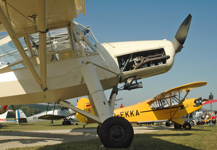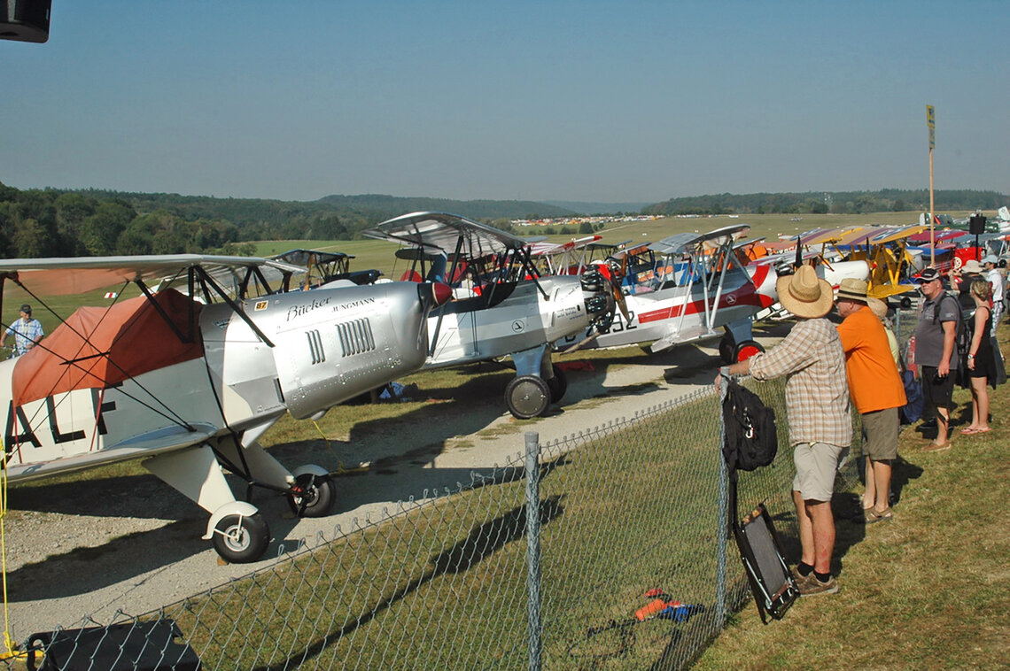 Die Silhouette des einmotorigen Flugzeugs wird ungewöhnlich schnell grösser. Das Geräusch geht nun in ein aggressives Brüllen über. Sekundenbruchteile später ist der Propeller-Oldie an den Zuschauern auf dem kleinen Fluggelände östlich von Stuttgart vorbeigerast. Die Besucher staunen begeistert: «Wahnsinn!» Der Segelflugplatz Hahnweide beim schwäbischen Städtchen Kirchheim unter Teck verwandelt sich alle paar Jahre in ein Zentrum des motorisierten Oldtimerflugs. Die Fliegergruppe Wolf Hirth organisiert das grösste Klassiker-Fliegertreffen Europas bereits zum 20. Mal. Die rassige Maschine, die mit geschätzt 250 Knoten über die Graspiste fegte, ist eine Supermarine Spitfire, ein ehemaliges britisches Jagdflugzeug.