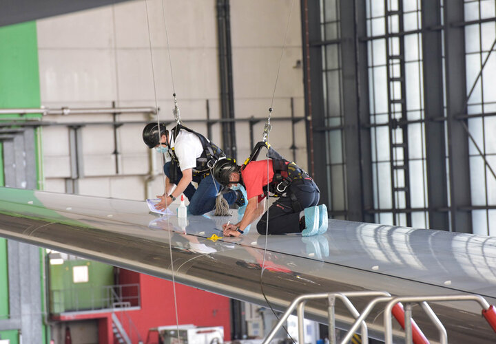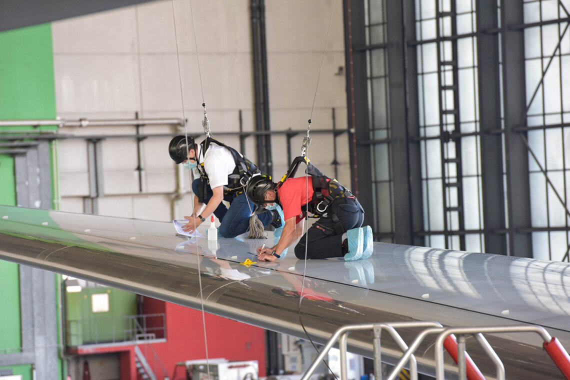 Eine der Aufgaben von Luftfahrtingenieure und -Ingenieurinnen ist die Optimierung der Flugzeugaerodynamik. Dazu führen sie Strömungsanalysen mit 3D-Modellen der Flugzeuge aus. Ein klassisches 3D-Modell des gesamten Flugzeugs im Stillstand kann im Hangar mit einfachen messtechnischen Methoden erstellt werden. Um zu verstehen, wie sich die Tragflächen im Flug verhalten, reicht das jedoch nicht aus, da ein Teil der Tankladung in den Flügeln steckt und während eines Fluges verbraucht wird.