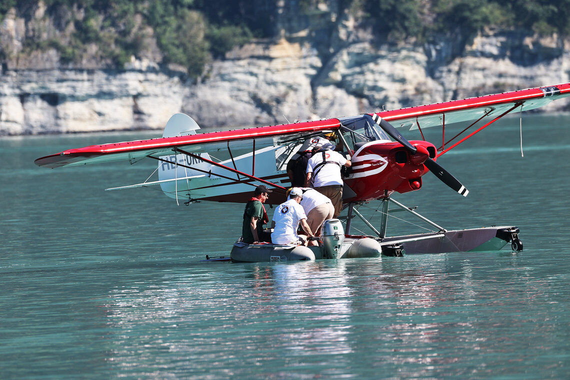 Am Check-In im SPAS-Zelt boten die Crew-Mitglieder Tickets für einen 20-minütigen Flug in die nähere Umgebung an. Die Wahl des Flugzeuges – je nachdem ob die Sitzplätze nebeneinander oder hintereinander gewünscht wurden – stand Frühbuchern offen. Rekordverdächtig war dieses Jahr die Auswahl an Flugzeugen. Im Dauereinsatz standen die mit modernen, leisen und sparsamen Rotax-Motoren ausgerüsteten Maschinen wie das FlyWhale-Flugboot und die französisch immatrikulierte Savannah S «Eco Light». Bis auf die letzten Plätze ausgebucht waren auch die drei Piper PA-18 Super Cub, HB-ORK, HB-PMN sowie die hellblaue Maschine D-ERNC. Der Eye-Catcher schlechthin war das einmotorige, eigenwillige Flugboot Republic RC3 SeaBee. Der auffällig leuchtend gelbe und bärenstarke Aviat A-1B Husky, HB-KRT, ist immer wieder gern gesehen und bereichert jedes Treffen.