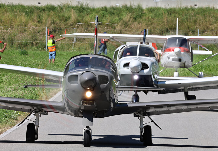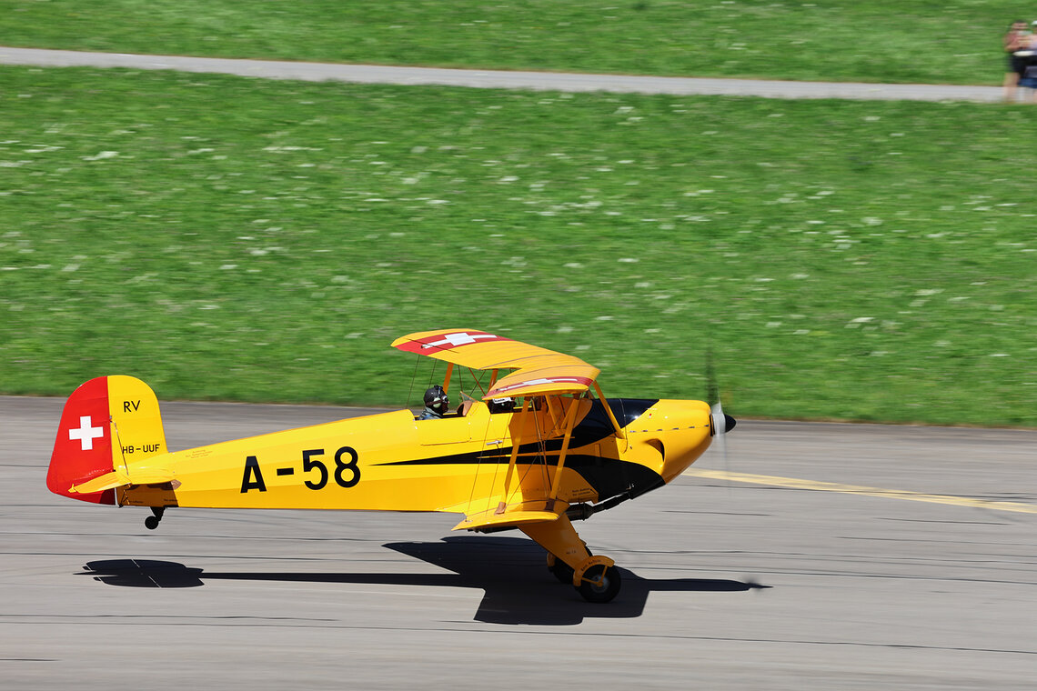Bereits am frühen Morgen schwebten die ersten Flugzeuge via Piste 28 ein. Im Nu waren die Abstellplätze mit 120 Sport-, Eigenbau-, Trainings-, Schul- und altehrwürdigen Flugzeugen belegt. Während sich der Verkehr auf der Gotthard-Autobahn gegen Norden den ganzen Tag staute, genossen die Piloten, Aviatik-Affinen und ganze Familien das Ambiente. Rund 2000 Anwesende erfreuten sich an den ohne Abschrankungen präsentierten Flugzeugen und kamen mit den Piloten ins Gespräch.