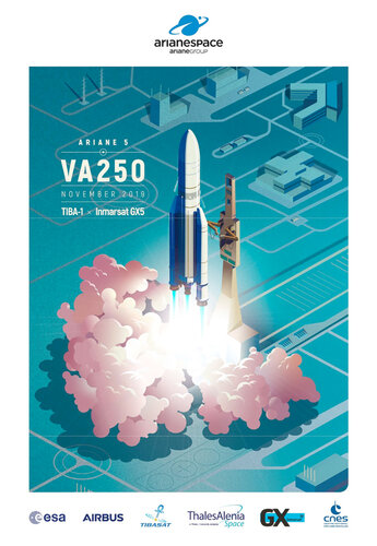 Auf seinem vierten Flug mit Ariane 5 im Jahr 2019 transportiert Arianespace zwei Telekommunikationssatelliten für Langzeitkunden in die Umlaufbahn: TIBA-1 für Thales Alenia Space und Airbus Defence and Space; und der GX5-Satellit für den Betreiber Inmarsat.