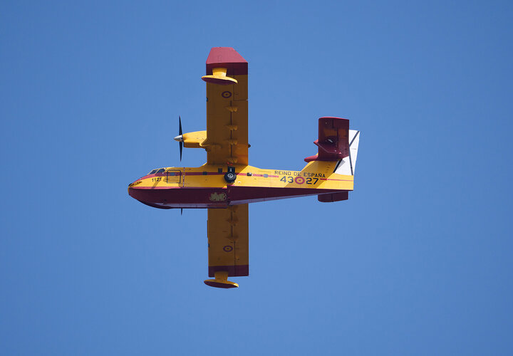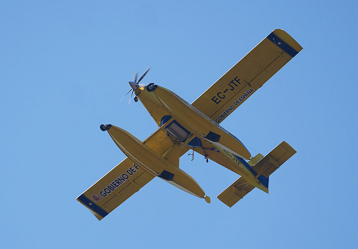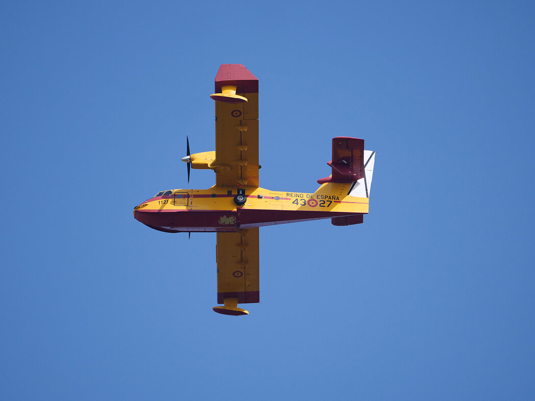 Wenn ein Aviatik-Journalist nach mehreren Air Shows Erholung in Spanien sucht, dann besucht er das Hinterland der Costa Blanca. Denn die Strände an der Meeresküste sind überlaufen und die Hitze ist im Schatten von Mandelbäumen einer Finca besser zu ertragen. So geniesse ich im besagten Hinterland Spaniens die beinahe perfekte Stille, nur durch das Zirpen der Grillen begleitet. Im Liegestuhl bei einem kühlen Drink lässt sich die spannende Geschichte «La batalla de Inglaterra» – die Luftschlacht um England aus spanischer Sicht – entspannt nachlesen. Doch dann spitzt Kater «Dusty» seine Ohren und schaut in den wolkenlosen Himmel. Was ist los? Da dröhnen plötzlich Flugzeugmotoren, in geringer Höhe brausen weder Spitfires noch Hurricanes über die Finca, sondern Löschflugzeuge des Typs Canadair CL-215 der Spanischen Luftwaffe und Air Tractor AT-802 der Löschfirma Avialsa aus Valencia-Manises. Das Teleobjektiv gibt Gewissheit: Nur 15 Kilometer entfernt verdunkeln schwarze Rauchwolken den Himmel. Im Einsatz stehen bis 31 Löschflugzeuge und Helikopter, sie bekämpften die Waldbrände während dreier Tage.