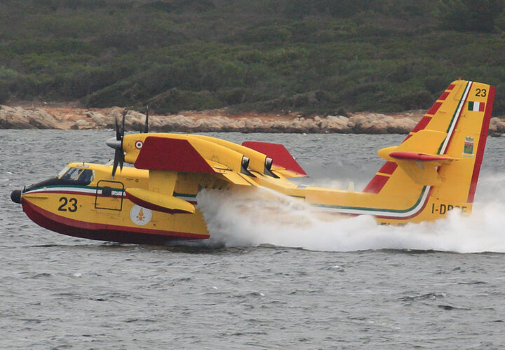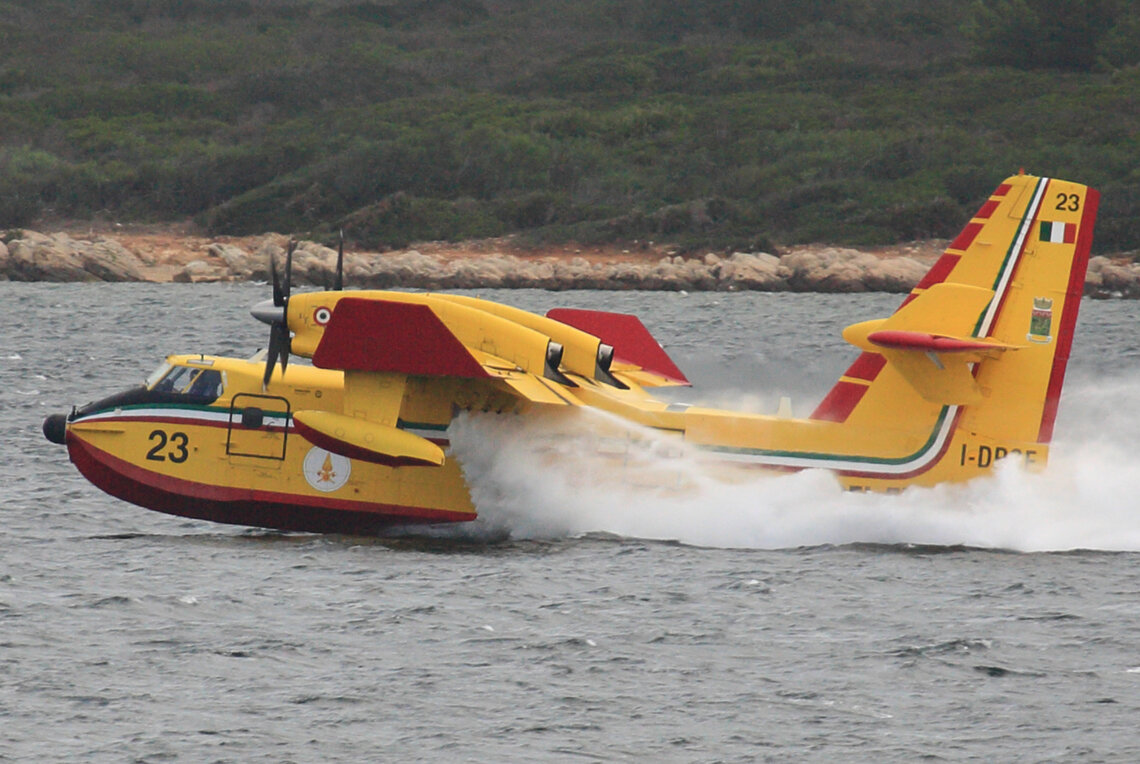 Anders als bei Piloten von bodengebundenen Löschflugzeugen ist eine Canadair-Crew üblicherweise bis zur Landung zum Tanken von Kerosin im Dauereinsatz. Denn sofort nach dem Abwurf von 6000 Liter Wasser über dem Feuer wird wieder auf dem nächstmöglichen See oder im Meer aufgesetzt und Löschwasser aufgenommen. Die Flüssigkeitsaufnahme dauert bei der Canadair nur zwölf Sekunden. Durch eine Luke unten am Rumpf wird das Wasser in die Löschtanks gepresst. 410 Meter Strecke auf dem Meer, einem Fluss oder See reichen bereits, um die Löschtanks zu füllen.