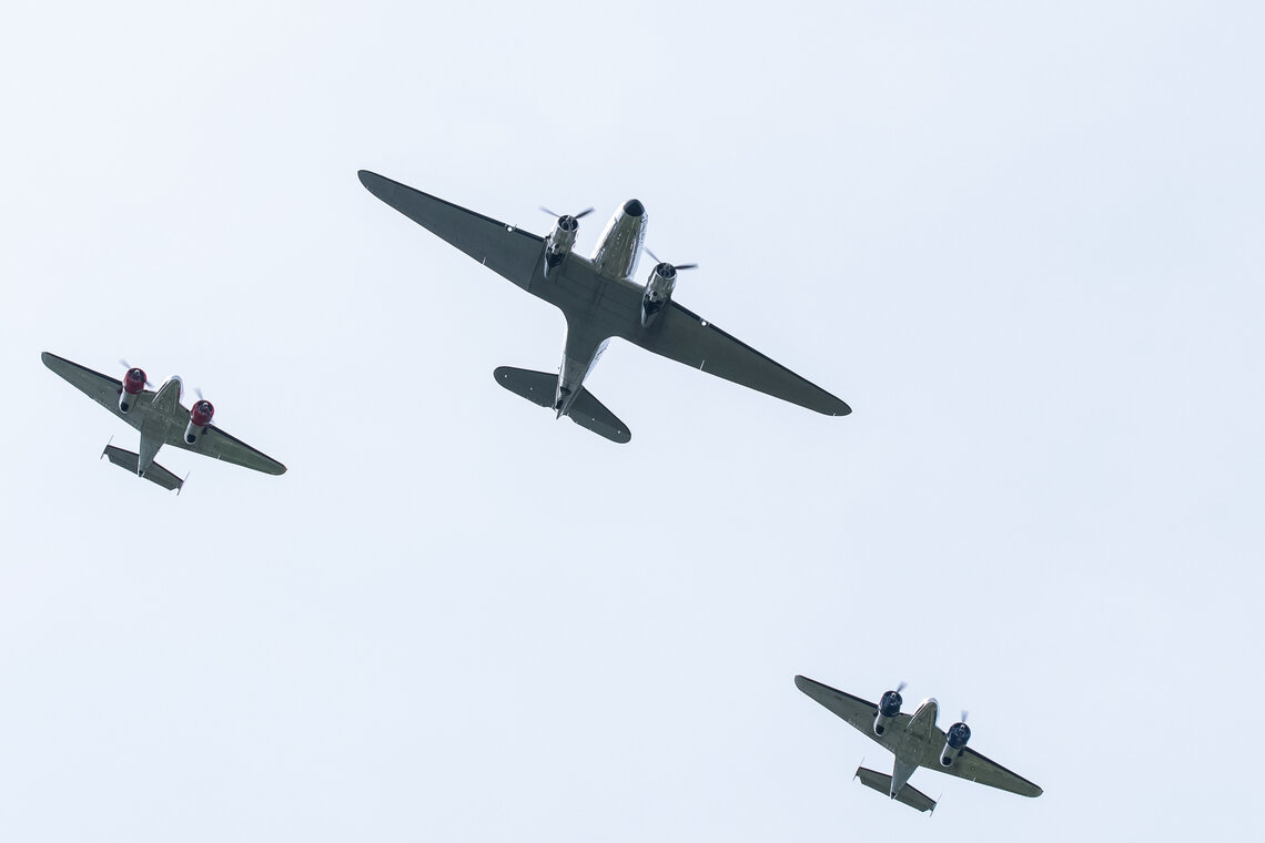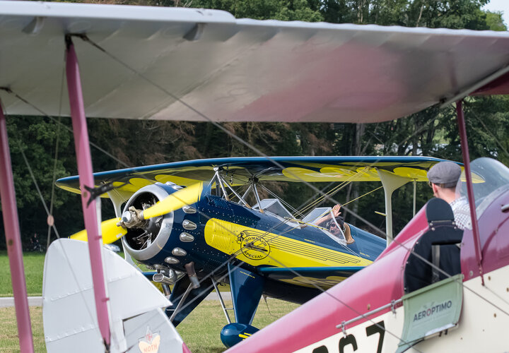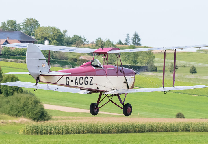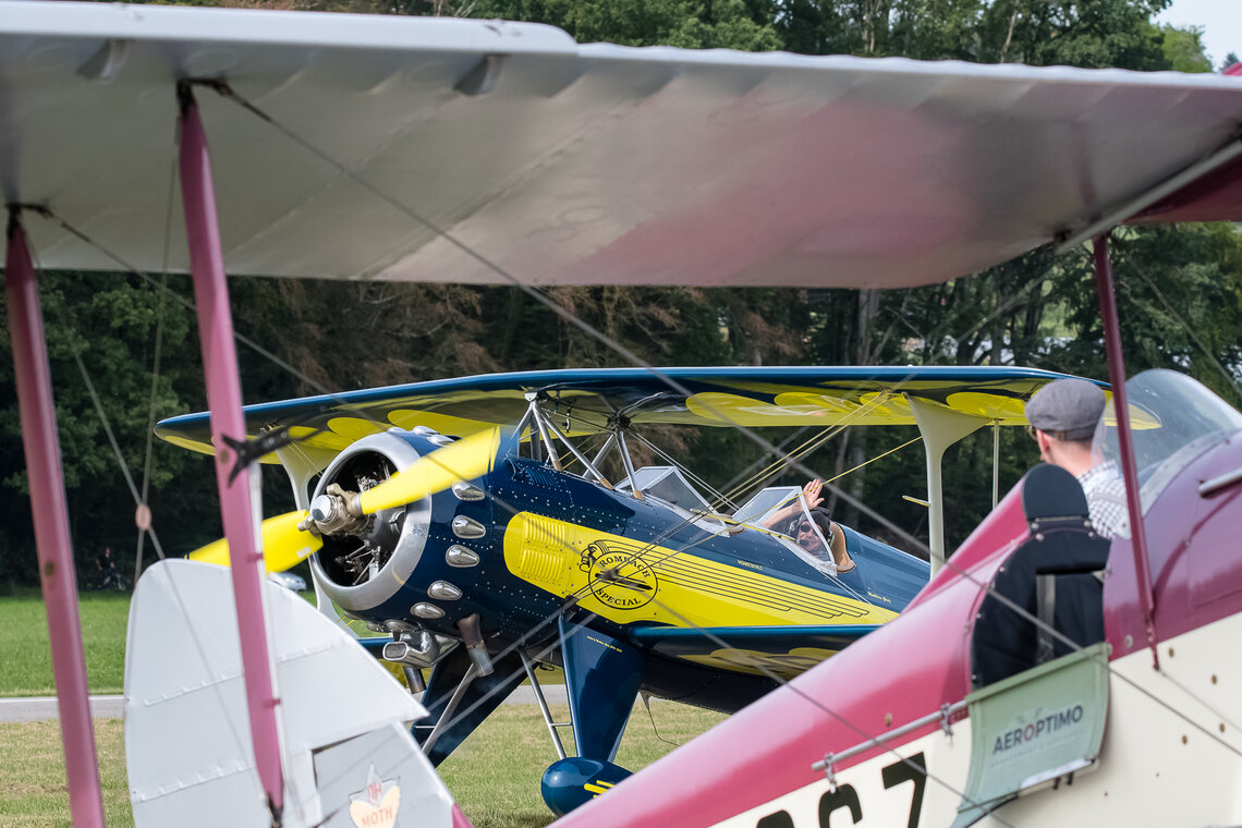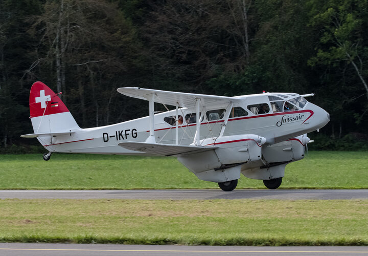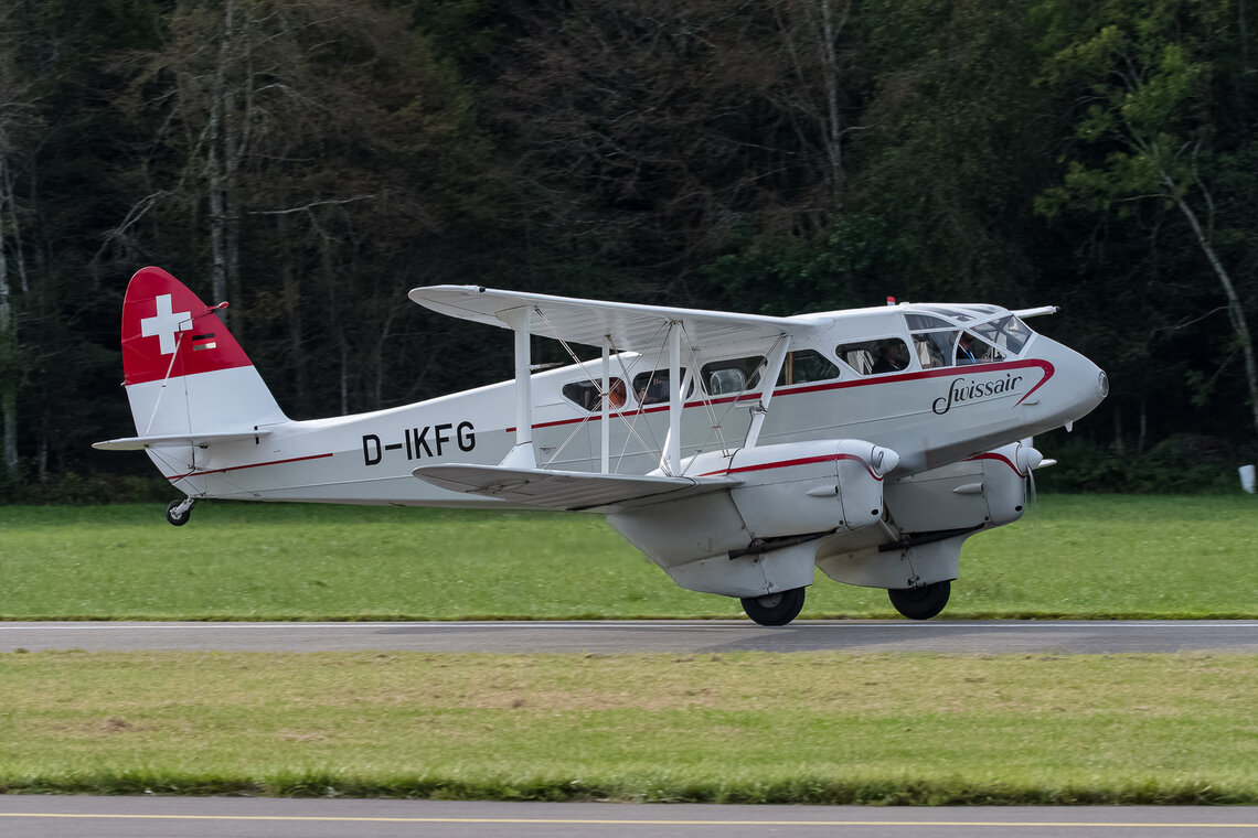 Sehr zur Freude des Publikums und zur Überraschung der Organisatoren setzte gegen Ende des Nachmittags die D.H.89A Dragon Rapide zur Landung an, so dass das Flugzeug auch noch aus der Nähe bewundert werden konnte. Ebenfalls zugegen war eine D.H.83 Fox Moth / G-ACEJ. Sieben Stunden hatte die Anreise von Nigel Lemon mit der De Havilland DH.60G III Moth Major / G ACGZ aus England gedauert. Der Brite zeigte leichten Kunstflug, hielt aber eine Sicherheitshöhe ein.