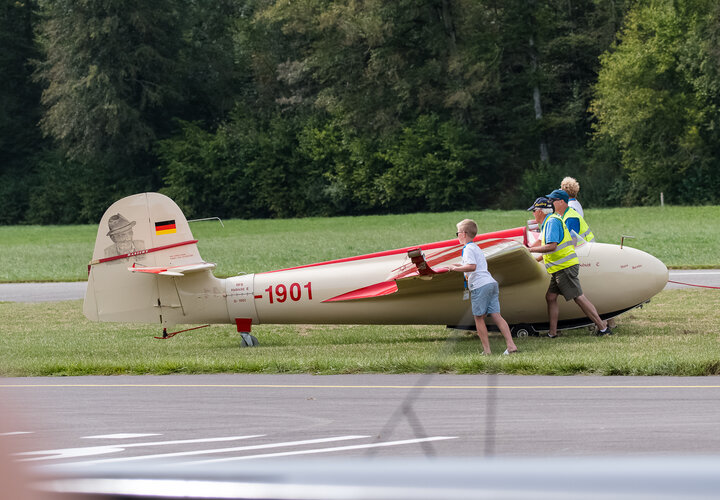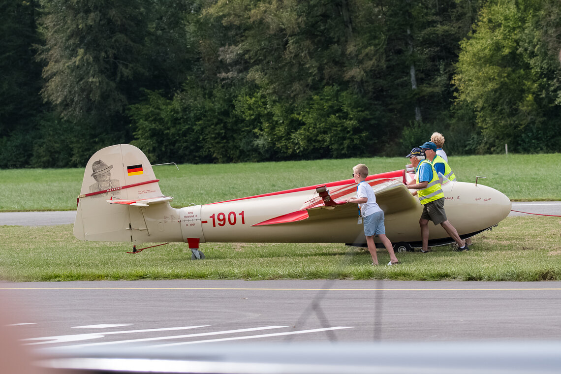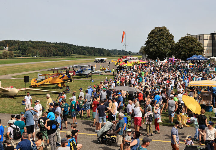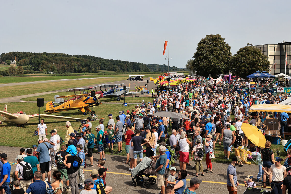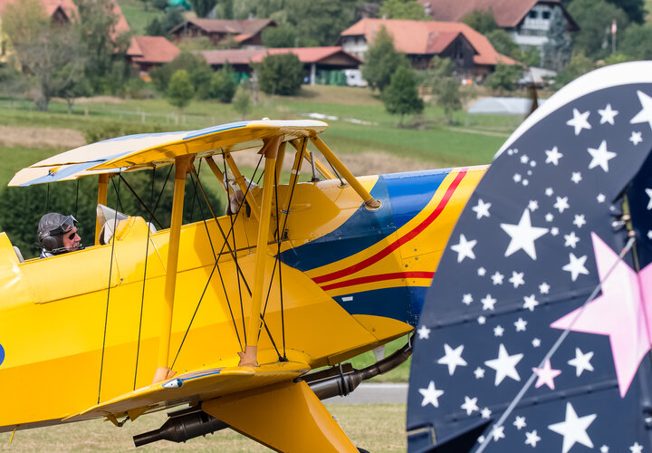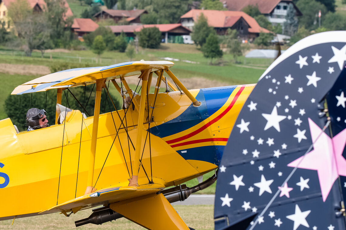 Die Flügerchilbi stand zwar medial im Schatten der Feierlichkeiten zum Flughafen-Jubiläum in Zürich. Aber für viele in der Region Oberaargau gehört ein Besuch dieses Anlasses zum ganz persönlichen Jahreskalender. Und wer weiss, ob die positive Berichterstattung übers Flughafenjubiläum den einen oder anderen zusätzlich motiviert hat, eine Flugveranstaltung zu besuchen. Jedenfalls waren es gut 6000 Besucherinnen und Besucher, die sich auf dem Gelände gut verteilten. Am Eingang zum Flugplatz roch, wie es auf einer Chilbi riechen muss: nach gebrannten Mandeln. Verschiedene Stände boten allerlei Dinge an, die Fliegerfans erfreuen, derweil die SGO-Oberaargau unzählige Interessierte ins Cockpit eines ihrer Segelflugzeuge blicken liess. Und schliesslich erkannte man hinter den Menschen auch die Silhouette von Flugzeugen.