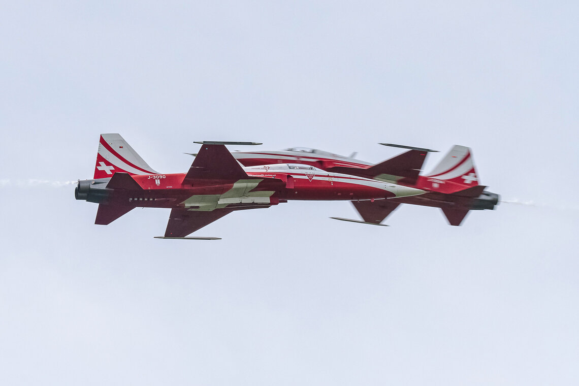 Die Patrouille Suisse –von den meisten natürlich mit Spannung erwartet – setzte den fulminanten Schlusspunkt. Für Tiger 6-Pilot Martin «Jaydee» Schär eine besondere Vorführung: Er wuchs in der Nähe des Flugplatzes Langenthal-Bleienbach auf und wohnt noch heute in der Gegend. Vielmehr aber hat er seine fliegerische Karriere mit Segelflug bei der SG Oberaargau begonnen.