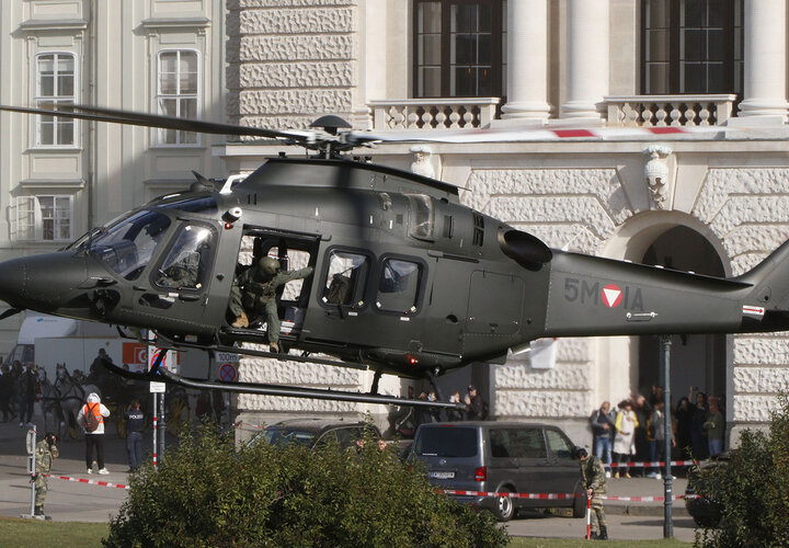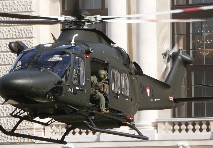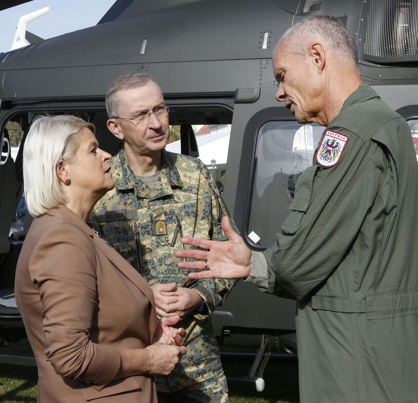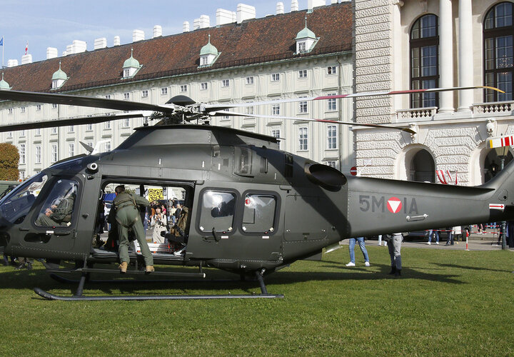 Am 26. Oktober feiert Österreich den Nationalfeiertag. Aus diesem Grund schwebte am Montagnachmittag der neue Mehrzweckhelikopter der österreichischen Luftstreitkräfte vor der Wiener Hofburg ein. Als der Helikopter auf einer kleinen Wiese vor der Hofburg gelandet war, nutzte Verteidigungsministerin Klaudia Tanner die Gelegenheit für ein Gespräch mit dem Chefeinführungspiloten des AW169 Bgdr. Luttenberger und dem Wiener Militärkommandanten Wagner.