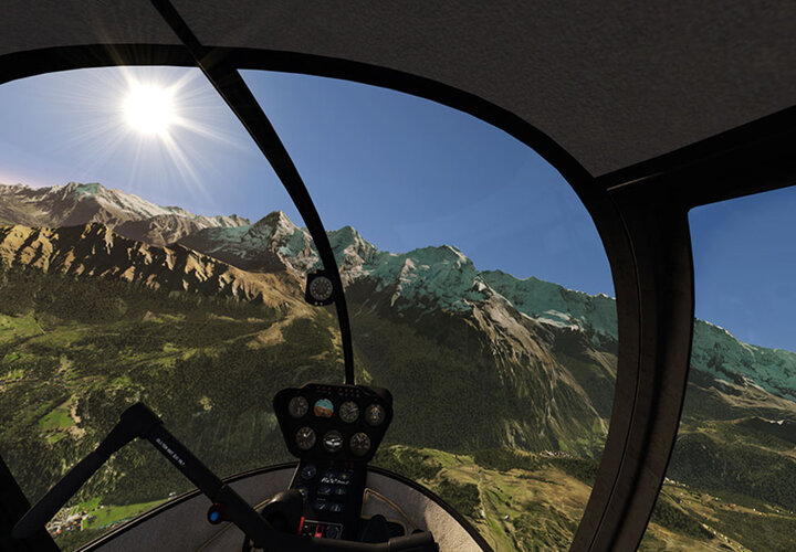 Mit einer VR-Brille der neusten Generation (8K Full HD) wird die visuelle Darstellung des Geländes zu einem «echten Flugerlebnis». Christoph Graf, CEO und Inhaber der Mountain Flyers, erwartet vom Simulator neben dem Umwelt- und Kosteneffekt auch einen substanziellen Beitrag an die Flugsicherheit: «Die Lernenden können am Boden ohne jedes Risiko spezielle Flugmanöver und gefährliche Situationen üben, das gibt ihnen Routine, die sie in der Luft sicherer macht». VRM-Switzerland CEO Fabian Riesen freut sich, dass die Mountain Flyers an ihren zwei Standorten Bern-Belp und Grenchen mit je einem Simulator als Erste diesen Schritt in eine neue Epoche der Helikopterausbildung machen. «Bisher gab es aus Kostengründen nur Simulatoren für Grosshelikopter. Der VRM-Switzerland-Simulator lässt nun dieselben Standards in der Ausbildung zu.» Christoph Graf verspricht sich viel davon: «Mehr Nachhaltigkeit, weniger CO2, tiefere Kosten und höhere Sicherheit werden generell von der Luftfahrt gefordert. Mit dem ersten Helikopter-Simulator machen wir einen grossen Schritt in die richtige Richtung.»