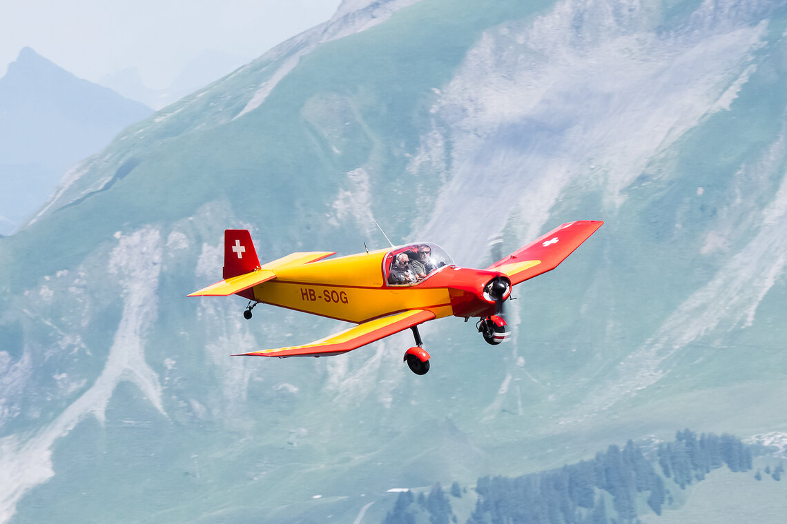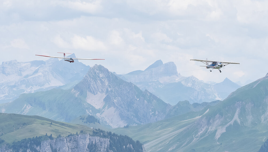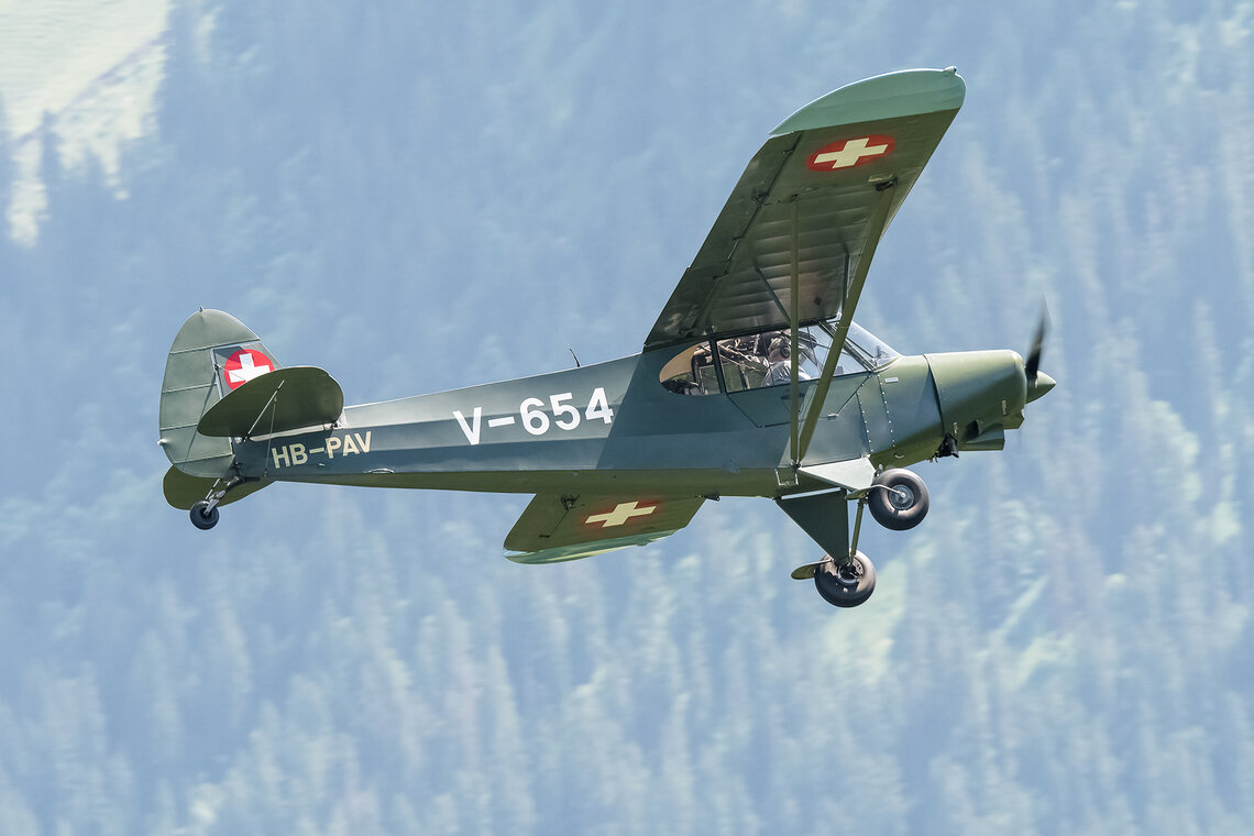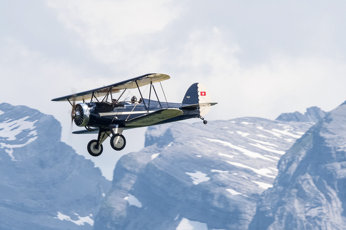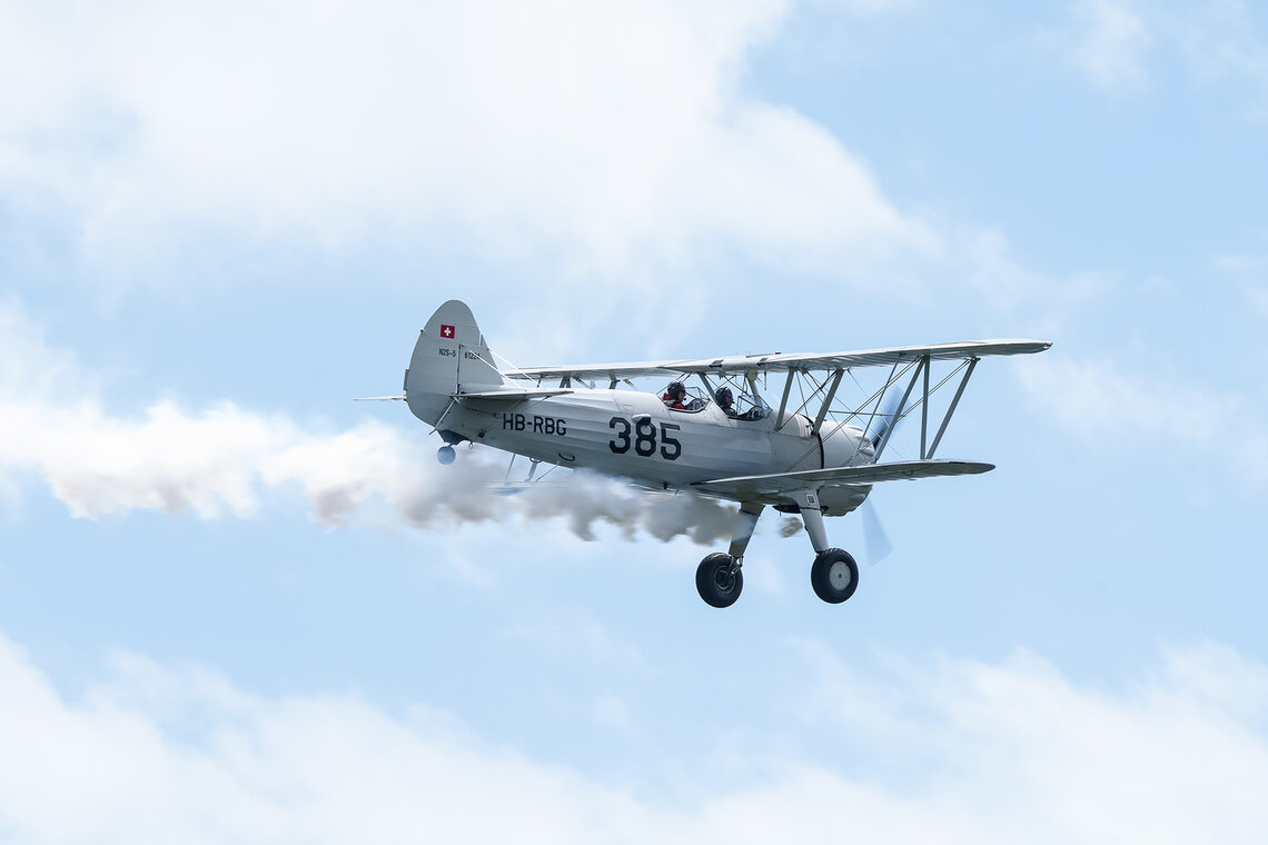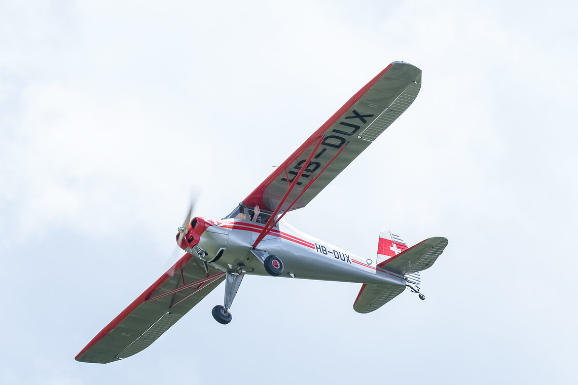 Flugzeuge aus Stanser Produktion eröffnen die diesjährige Flugparade. Ein Pilatus B4 wird von einem Lightwing AC4 geschleppt. Die Flugzeugherstellerin Lightwing hat ihren Sitz unweit der Pilatus Flugzeugwerke in Stans. Wenig später klinkt sich der Pilot der Pilatus B4 aus und segelt drei Mal an den Zuschauenden vorbei. Die Möglichkeit, dieses für den Segelkunstflug gebaute Segelflugzeug von Pilatus so zu fotografieren, ist einzigartig. Das gilt auch für alle anderen 22 Oldtimer, die an diesem Nachmittag an der OltimAIR teilnehmen. Im Programm stehen 23 Maschinen plus zwei Überraschungsgäste. Doch der Pilot einer Beech 18 kann an diesem Tag nicht fliegen, und auch mit den traditionellen «Überraschungen», die ausser den Veranstaltern im Vorfeld keiner kennt, klappt es diesmal nicht. Über einen Mangel an Fotosujets kann sich aber niemand beklagen.