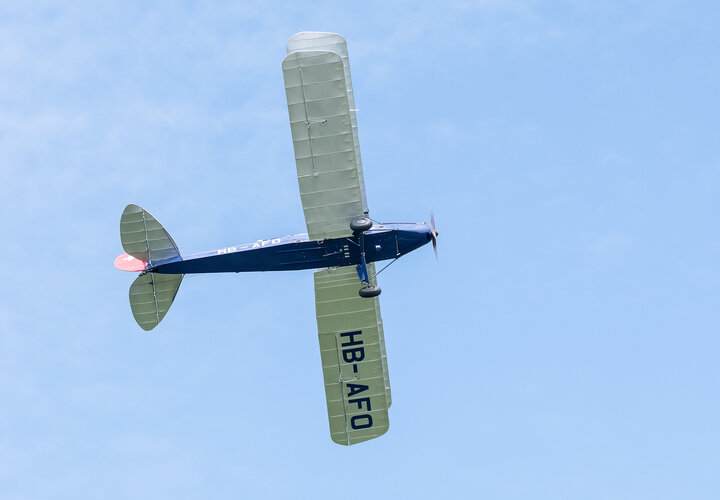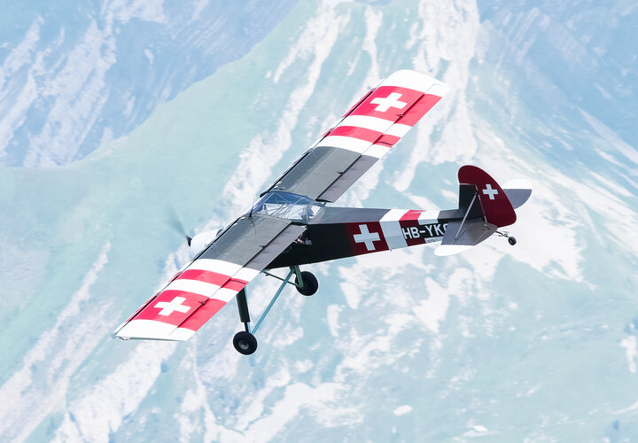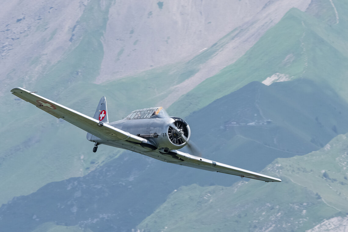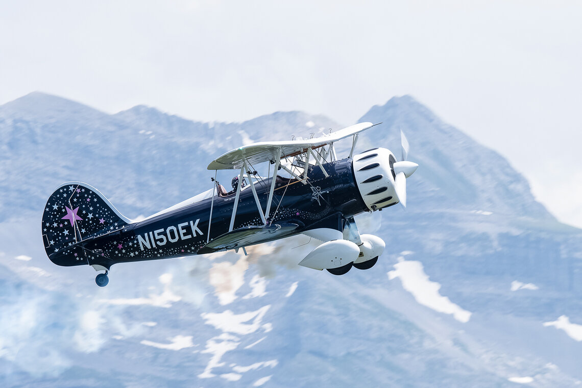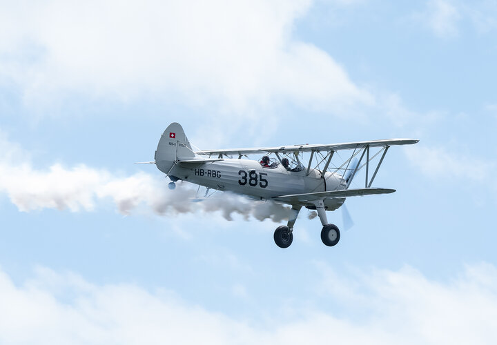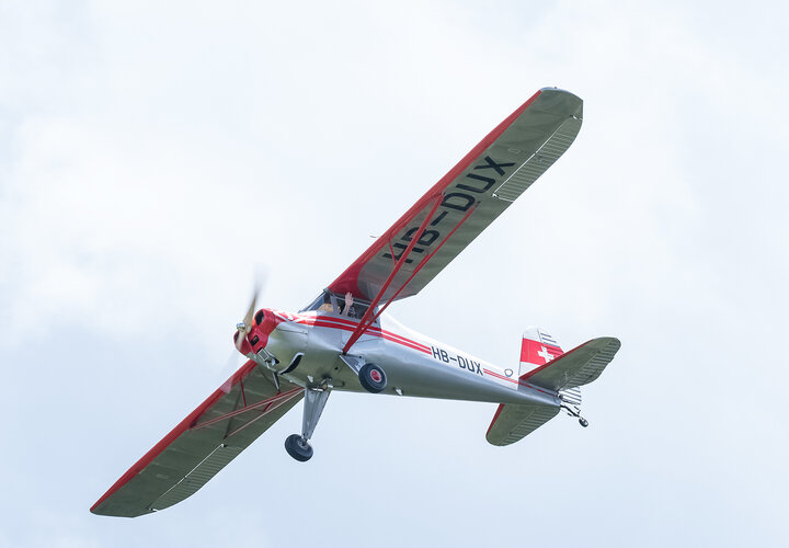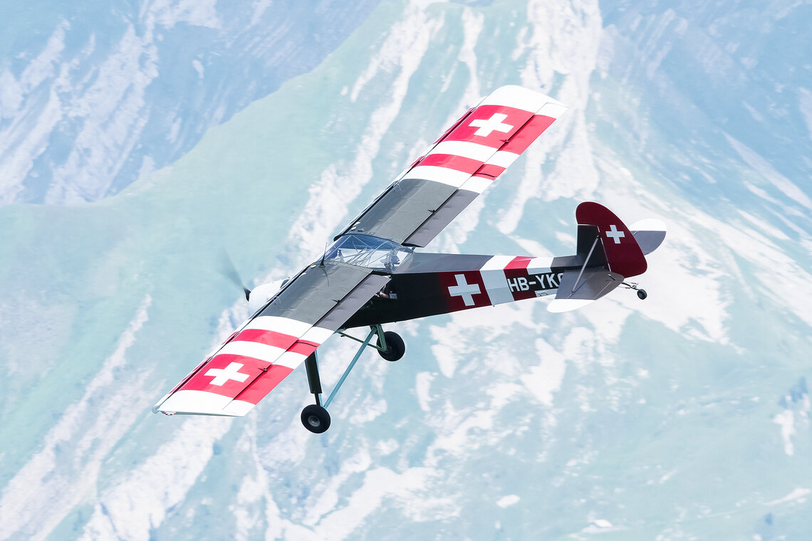 Flugzeuge aus Stanser Produktion eröffnen die diesjährige Flugparade. Ein Pilatus B4 wird von einem Lightwing AC4 geschleppt. Die Flugzeugherstellerin Lightwing hat ihren Sitz unweit der Pilatus Flugzeugwerke in Stans. Wenig später klinkt sich der Pilot der Pilatus B4 aus und segelt drei Mal an den Zuschauenden vorbei. Die Möglichkeit, dieses für den Segelkunstflug gebaute Segelflugzeug von Pilatus so zu fotografieren, ist einzigartig. Das gilt auch für alle anderen 22 Oldtimer, die an diesem Nachmittag an der OltimAIR teilnehmen. Im Programm stehen 23 Maschinen plus zwei Überraschungsgäste. Doch der Pilot einer Beech 18 kann an diesem Tag nicht fliegen, und auch mit den traditionellen «Überraschungen», die ausser den Veranstaltern im Vorfeld keiner kennt, klappt es diesmal nicht. Über einen Mangel an Fotosujets kann sich aber niemand beklagen.