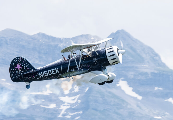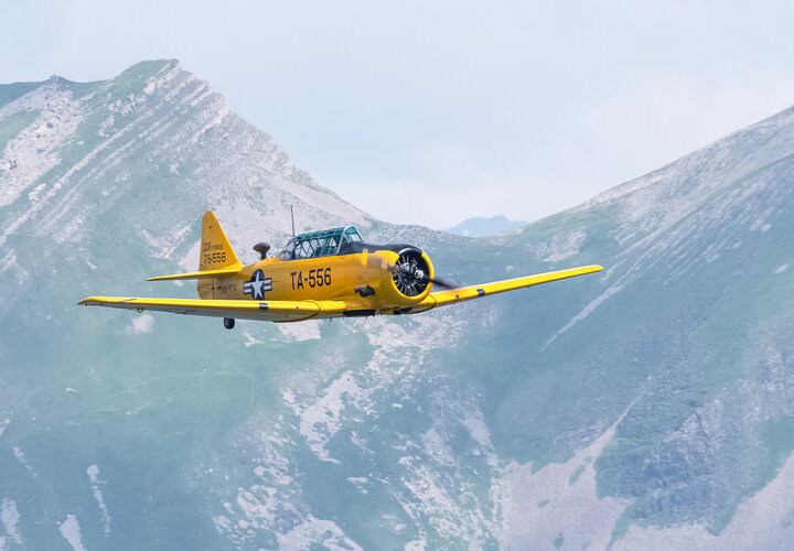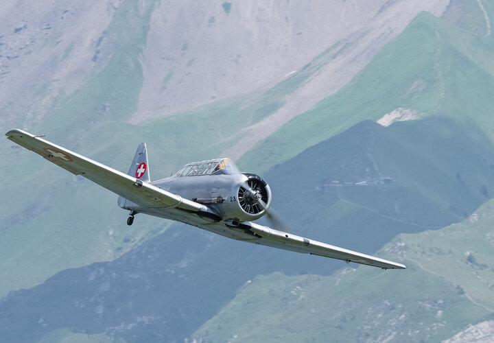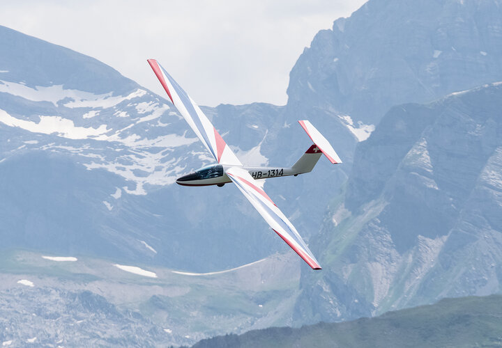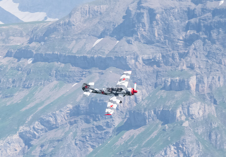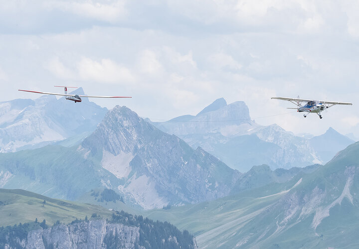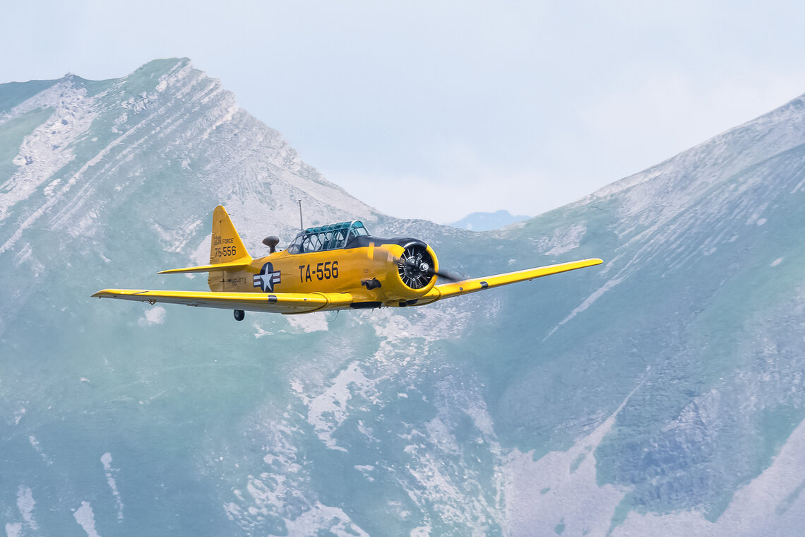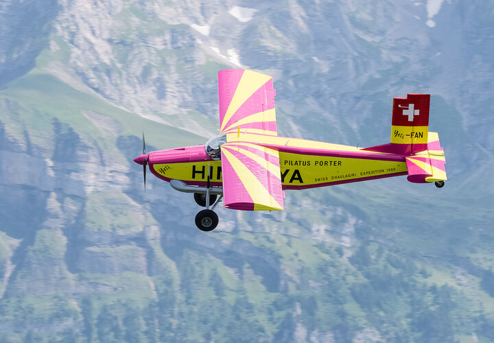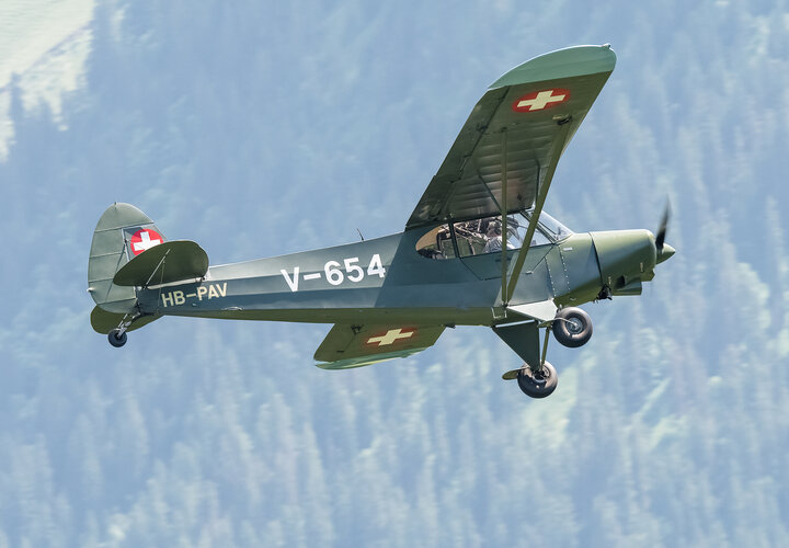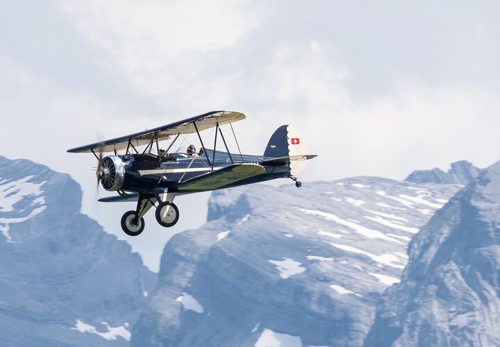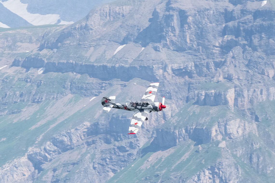 Flugzeuge aus Stanser Produktion eröffnen die diesjährige Flugparade. Ein Pilatus B4 wird von einem Lightwing AC4 geschleppt. Die Flugzeugherstellerin Lightwing hat ihren Sitz unweit der Pilatus Flugzeugwerke in Stans. Wenig später klinkt sich der Pilot der Pilatus B4 aus und segelt drei Mal an den Zuschauenden vorbei. Die Möglichkeit, dieses für den Segelkunstflug gebaute Segelflugzeug von Pilatus so zu fotografieren, ist einzigartig. Das gilt auch für alle anderen 22 Oldtimer, die an diesem Nachmittag an der OltimAIR teilnehmen. Im Programm stehen 23 Maschinen plus zwei Überraschungsgäste. Doch der Pilot einer Beech 18 kann an diesem Tag nicht fliegen, und auch mit den traditionellen «Überraschungen», die ausser den Veranstaltern im Vorfeld keiner kennt, klappt es diesmal nicht. Über einen Mangel an Fotosujets kann sich aber niemand beklagen.