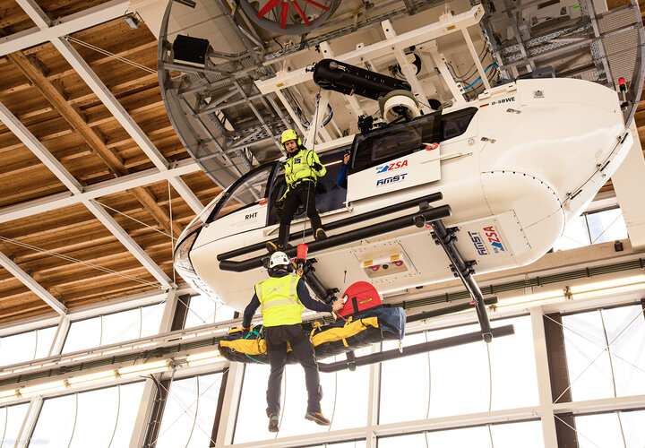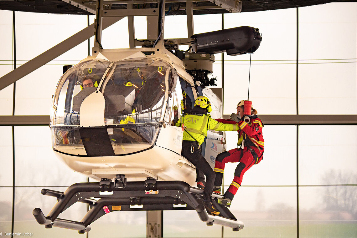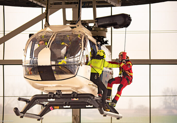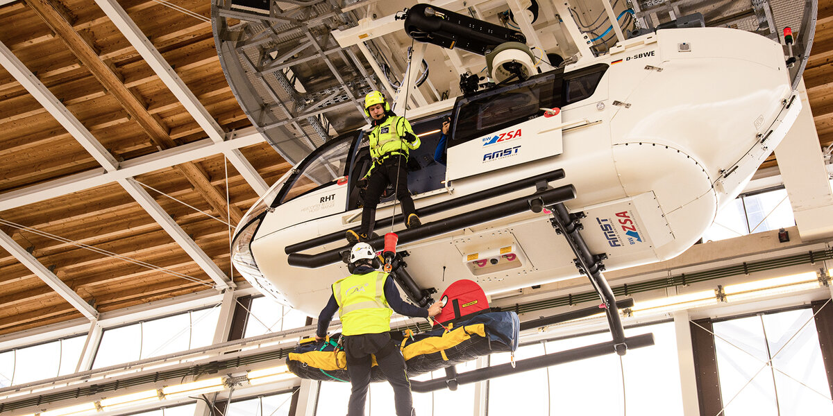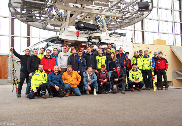 Die AAA Alpine Air Ambulance führt regelmässig Windentrainings durch, um ihre Teams auf herausfordernde Situationen vorzubereiten. So fuhr auch im März eine interdisziplinäre Gruppe von 27 Ärzten, 7 HEMS TC (Technische Crewmitglieder) und 3 RSH (Rettungsspezialist Helikopter) nach Bad Tölz im bayerischen Oberland. Im BW-ZSA Bergwacht-Zentrum für Sicherheit und Ausbildung steht eine weltweit einzigartige Trainingsanlage, mit der Rettungsmannschaften realitätsnah und effizient Einsatzverfahren mit dem Helikopter trainieren können.