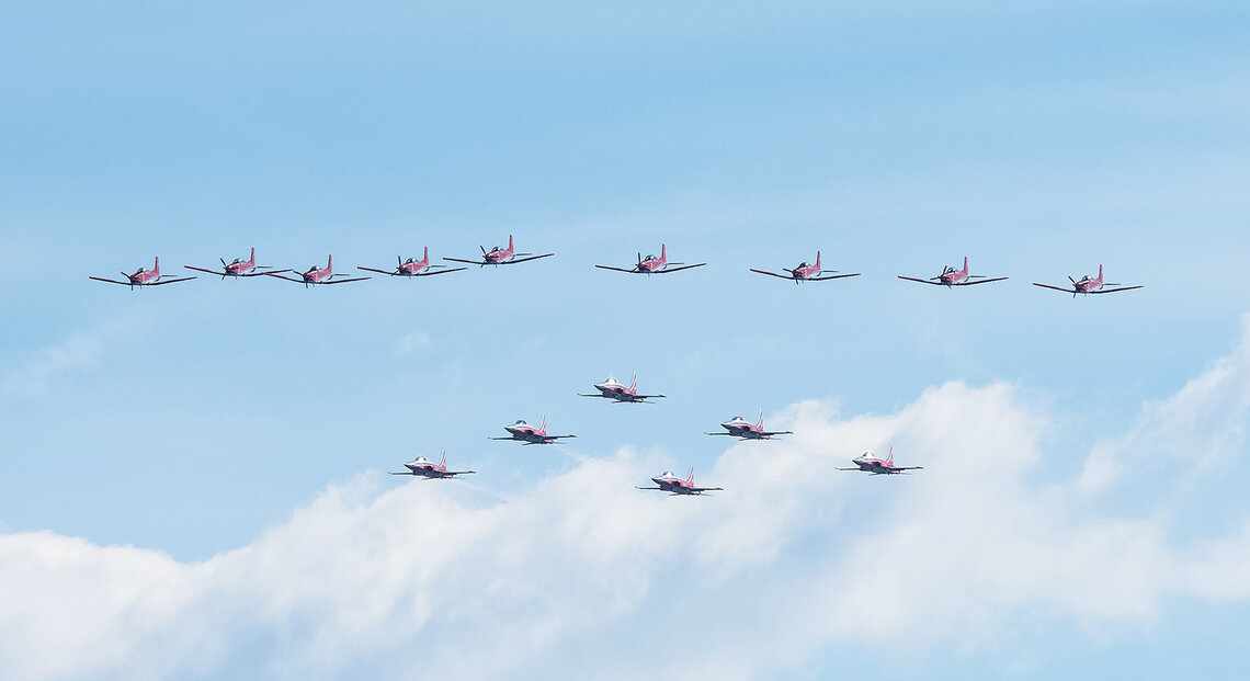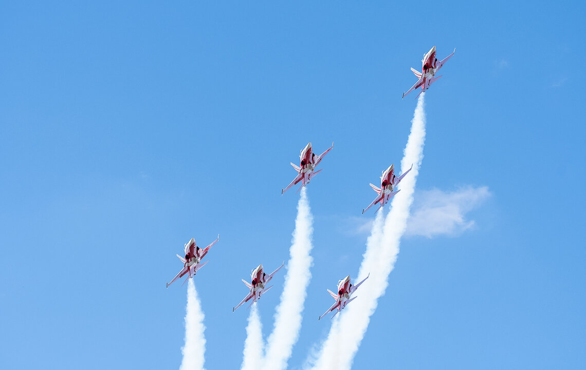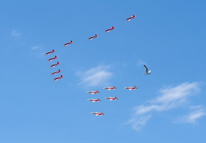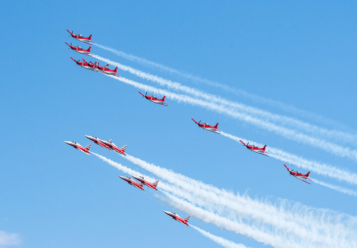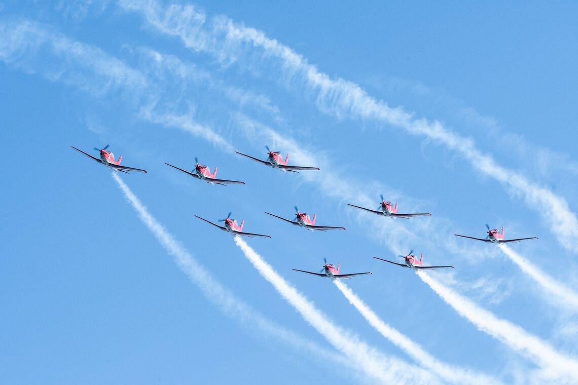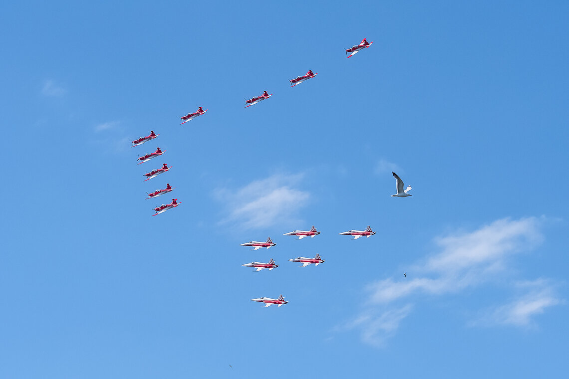 Am letzten Juni-Wochenende feiert Zug traditionell das Seefest. In den vergangenen Jahren flogen entweder das PC-7 TEAM oder die Patrouille Suisse. Dieses Jahr lud der Veranstalter beide Teams ein. Diese sorgten für Gänsehaut-Momente beim Publikum.