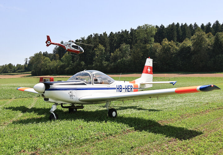 Die Flüge mit der Antonov waren ausgebucht, genauso wie die Mitfluggelegenheiten mit dem Eurocopter EC 120 B der Swiss Helicopter AG. Am späteren Nachmittag gesellten sich eine weitere Antonov, ein Piper und der Eigenbau Slepcev Storch MK. IV, einem massstäblich verkleinerten Nachbau des Fieseler Storch hinzu. Gegen die sengende Hitze gab es nur ein probates Mittel: der Aufenthalt mit einem kühlen Getränk im Festzelt!