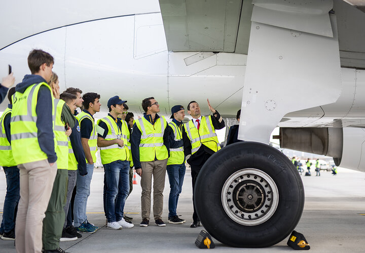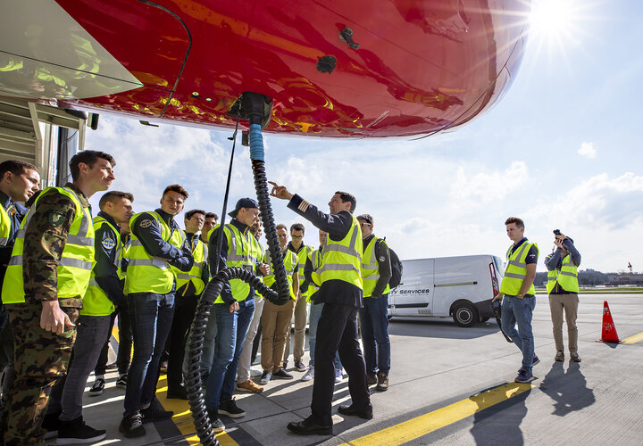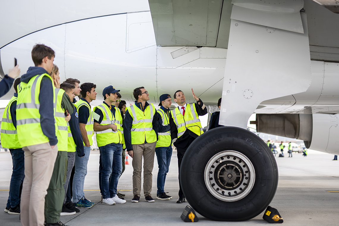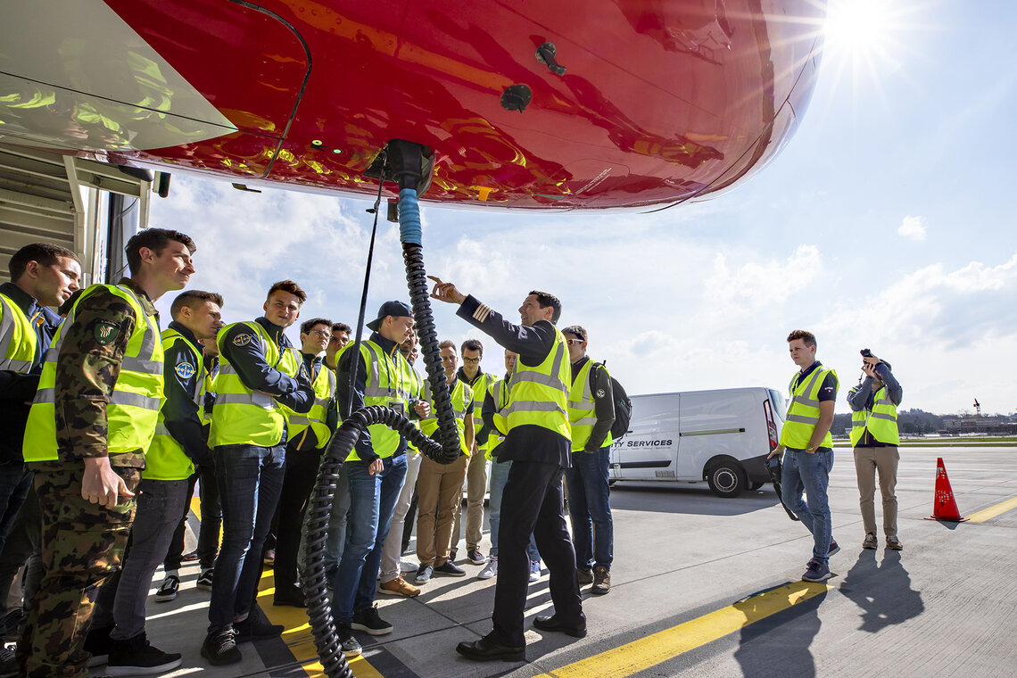 Nach der Landung auf dem Flughafen Zürich bot sich die Gelegenheit, den A320 sowie einen Super Puma der Luftwaffe aus der Nähe zu besichtigen. Die Crews standen dabei Red und Antwort. Bei den anschliessenden Vorträgen durch Peter Merz, F/A-18-Pilot und Projektleiter AIR2030, Daniel Landert, Chief Operating Officer Edelweiss Air und Beat Hedinger, Helikopterpilot und SPHAIR-Geschäftsleiter, erfuhren die SPHAIR-Absolventen weitere wertvolle Informationen. Die umworbenen Talente schienen ihnen förmlich an den Lippen zu hängen und nutzten die einmalige Gelegenheit, aus berufenem Munde alles zu erfahren, was es über die Ausbildung und den Pilotenalltag zu erfahren gab.