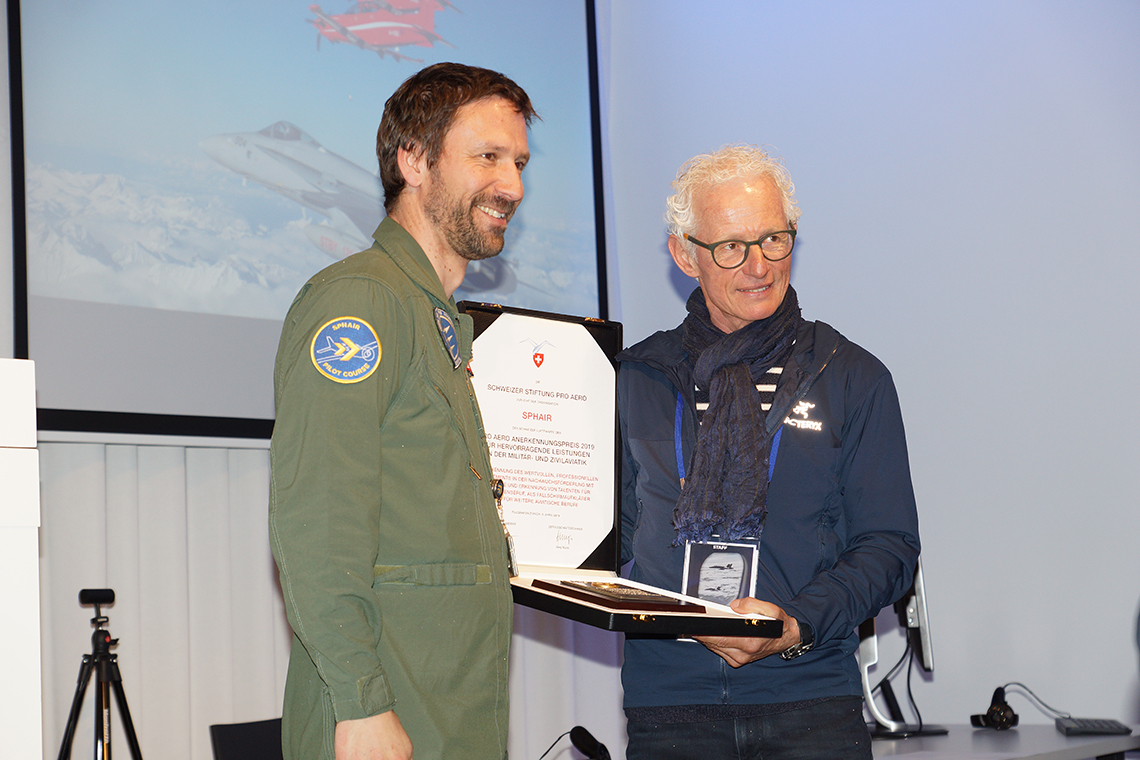 Einen passenderen Rahmen hätte dafür kaum gewählt werden können: Von Markus Gygax, Präsident des Stiftungsrats ProAero und ehemaliger Kommandant der Luftwaffe, erhielt SPHAIR-Geschäftsleiter Beat Hedinger am Experience Day den Anerkennungspreis der Stiftung Pro Aero für aussergewöhnliche Leistungen in der Luftfahrt, speziell im Bereich Nachwuchsförderung überreicht. Dass diese Preisverleihung berechtigt war, bewies SPHAIR an diesem Tag auf eindrückliche Weise. Freude und Leidenschaft der Profis – übertragen auf junge Menschen am Beginn ihrer Laufbahn: Nein, mehr kann man wohl kaum bieten, um den fliegerischen Nachwuchs zu begeistern. Wer wollte da nicht Pilot werden!