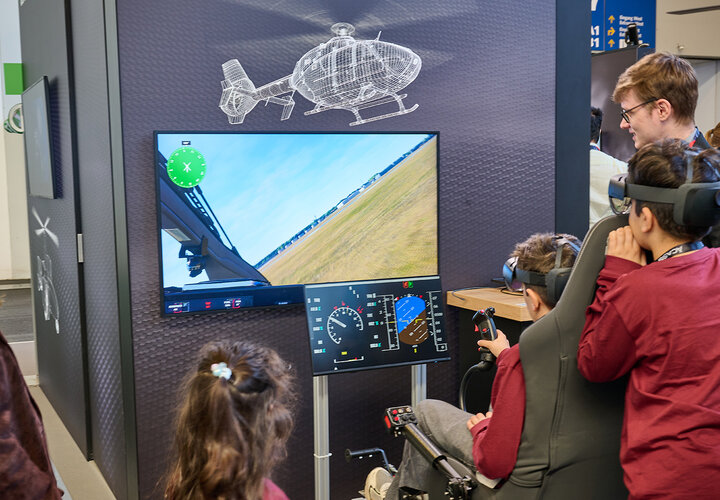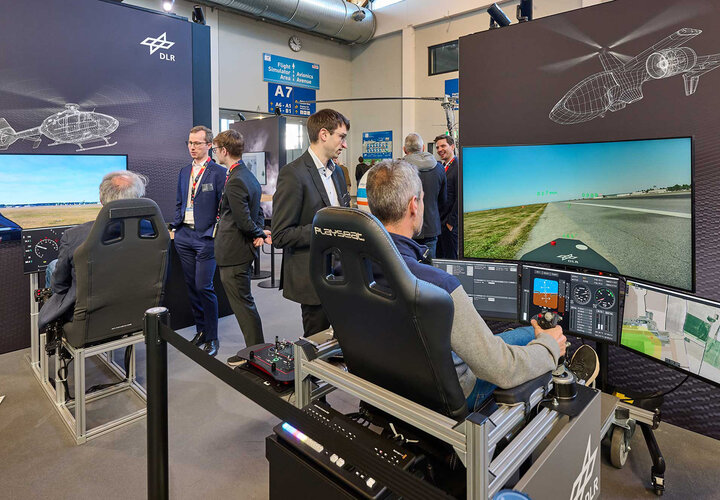 Nur wenn ein Helikopter oder Drehflügler berechenbar und präzise reagiert, kann er zuverlässig gesteuert werden. Das Testen der Flugeigenschaften ist daher essenziell für Sicherheit, Zertifizierung und Forschung. Mit HoloMTE (Holographische Mission Task Elements) entwickelt das DLR einen neuartigen Ansatz zur Bewertung von Flugeigenschaften. Dabei kommt moderne XR‑Technologie (Extended-Reality-Technologie) zum Einsatz. Der Einsatz dieser holografischen Sichtsysteme macht die Tests unabhängig von Ort und Wind. Ausserdem ermöglichen sie neue Flugtest-Manöver und machen die Flugerprobung effizienter. Messegäste können den Mixed-Reality-Simulator selbst fliegen und sowohl klassische als auch holografische Flugtest-Manöver mit dem Hubschrauber ausprobieren.