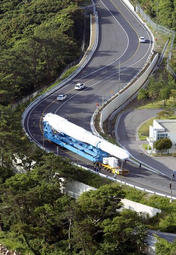 Nun hat Südkorea den Medienberichten zufolge zum ersten Mal das vollständige Mock-up einer Weltraumrakete aus eigener Entwicklung präsentiert. Wie die Nachrichtenagentur Yonhap berichtet, wurde eine Testversion der «Nuri» genannten Trägerrakete an die Startplattform des Naro-Raumfahrtzentrums in Goheung im Süden des Landes verlegt und dort aufgerichtet. Die Bilder zeigen den aufwändigen Strassentransport zum Startplatz, wo auch Prüfstandsversuche durchgeführt werden.