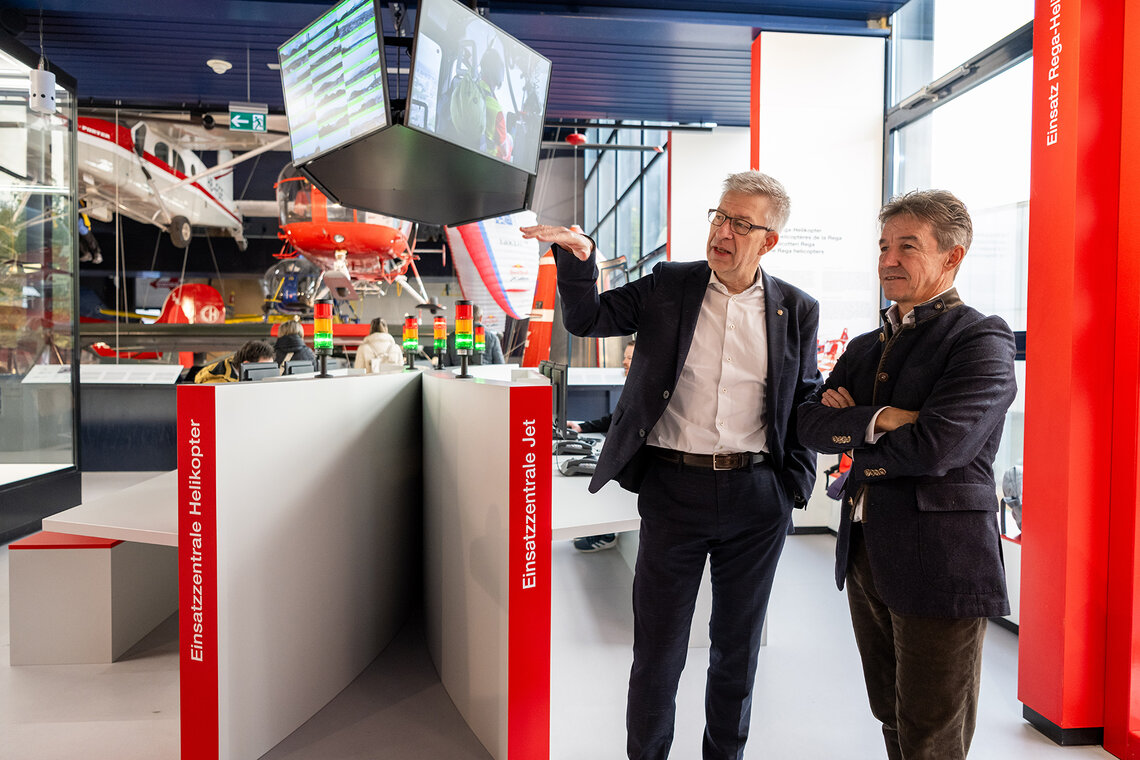 «Die Rega ist eine unverzichtbare Institution. Uns im Verkehrshaus ist es ein Anliegen, den Besuchenden die bedeutende Arbeit der Rega näherzubringen», betonte Verkehrshausdirektor Martin Bütikofer bei der Einweihung vor zahlreichen Gästen. Die überarbeitete Rega-Ausstellung veranschaulicht eindrucksvoll die Welt der Luftrettung und die Arbeit der Luftretter. Um die Besucherinnen und Besucher hautnah an diesem beeindruckenden Rettungsdienst teilhaben zu lassen, wurde in der Ausstellung neu die Rega-Einsatzzentrale für Helikopter und Flugzeuge realitätsnah nachgebildet. In der Einsatzzentrale werden rund um die Uhr Notrufe entgegengenommen und jährlich etwa 21’000 Einsätze im In- und Ausland koordiniert.