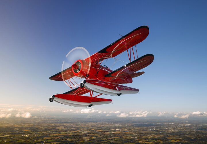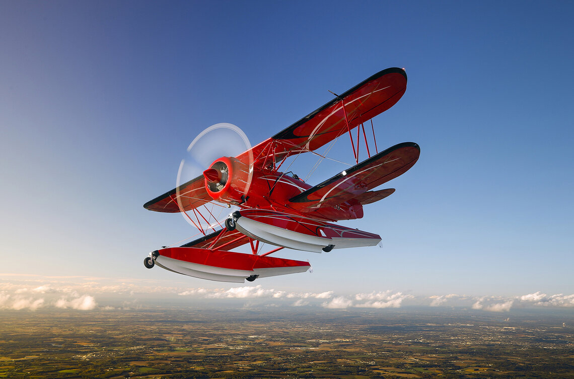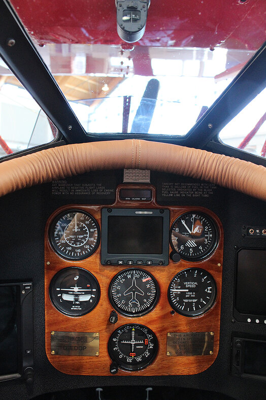 Die in einem warmen Rot-Ton lackierte Maschine glitzert in der Sonne. Ein bulliger Sternmotor sitzt unter der Cowling, der Holzpropeller passt perfekt dazu. Der wunderschöne Doppeldecker wurde wohl erst kürzlich restauriert, könnte man meinen. Nun fällt der Blick ins Cockpit des scheinbaren Oldtimers. Und hier ist überraschenderweise ein Garmin-500-Glascockpit zu sehen. Schlagartig wird klar, dass hier kein nostalgischer Klassiker steht, sondern ein nagelneues Flugzeug.