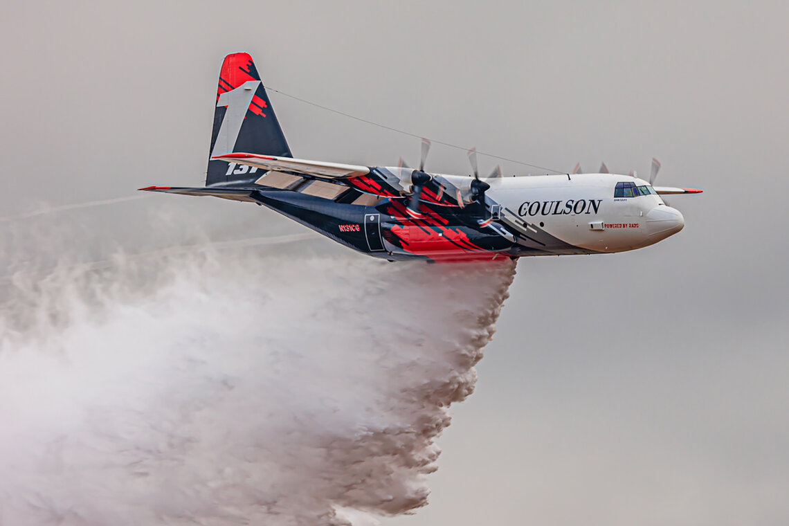 Zur Bekämpfung der verherenden Brände in Los Angeles sind mindestens zwei Canadair CL415 und zwei viermotorige Lockheed-Martin Hercules der Nationalgarde von Kalifornien im Einsatz . Zwei weitere C-130 der Nationalgarde aus dem Nachbar-Bundesstaat Nevada sollen dazukommen. Die vier Hercules C-130J können in kurzer Zeit mit portablen Rollon-rolloff-Löschwasserbehälter an Bord ausgestattet werden. So können sie bei jedem Flug 11‘000 Liter Löschflüssigkeit abwerfen. Zudem kommen ein umgebauter DC-10 Tankerflugzeug, Air-Tractor-Fireboss-Turboprops sowie mehr als 30 Helikopter der Typen Chinook CH-47 Helitanker sowie der Hersteller Sikorski, Bell und Boeing mit Bambi-Buckets im Einsatz.