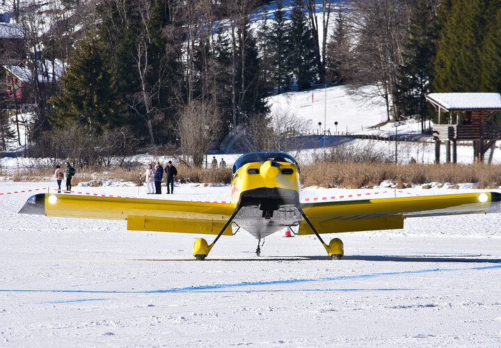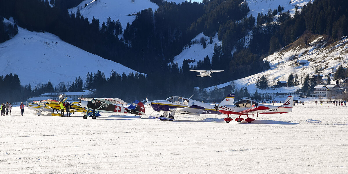 Fünf Jahre ist es her, seit der temporäre Flugplatz auf dem zugefrorenen Schwarzsee das letzte Mal seinen Betrieb aufnehmen konnte. Nach einem schönen Saisonauftakt und gut gefrorenem See Ende 2021, regnete es im neuen Jahr wieder weit in die Freiburger Voralpen und der See musste zwischenzeitlich für die Fussgänger wieder geschlossen werden. Dank kalten Nächten ist die Eisdecke nun wieder auf die magische Grenze von über 25 cm gewachsen, so dass am 26. Januar 2022 die am Vortag präparierte Piste mit ein paar Stunden Verspätung dem Flugverkehr übergeben werden konnte.