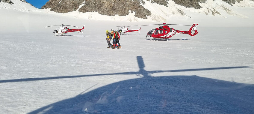 Die Air Zermatt wurde heute Morgen um 6.20 Uhr zu einem Grossrettungseinsatz am Grand Combin in der Gemeinde Val de Bagnes gerufen. Bei einem Gletscherabbruch wurden mehr als zehn Personen auf einer…