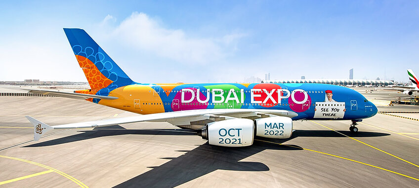 Emirates, Premier Partner und offizielle Fluggesellschaft der Expo 2020 in Dubai, hat zum Start dieses globalen Events eine eindrucksvolle A380-Sonderlackierung präsentiert.