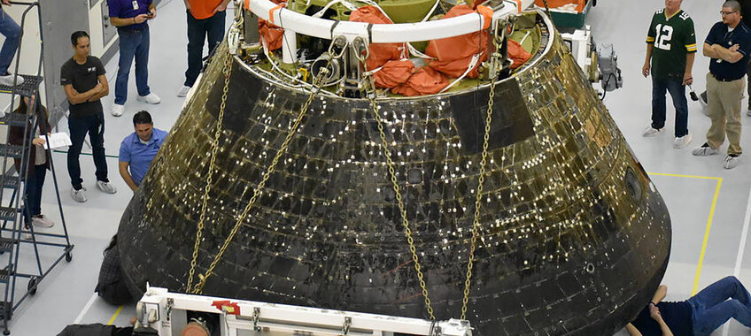 Das Orion-Raumschiff der Artemis I-Mission wurde Ende Dezember in die Multi-Payload Processing Facility im Kennedy Space Center der NASA in Florida gebracht. Dort überprüfen es Ingenieure und…
